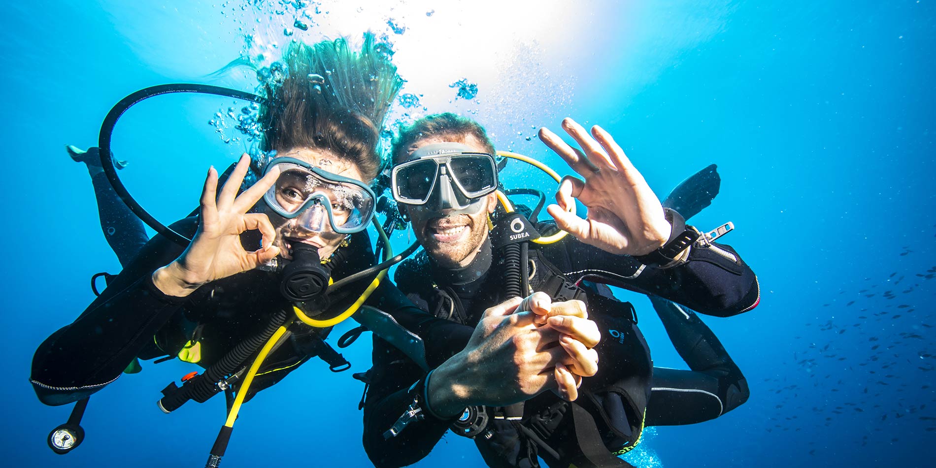 2名潜水员在水下摆姿势