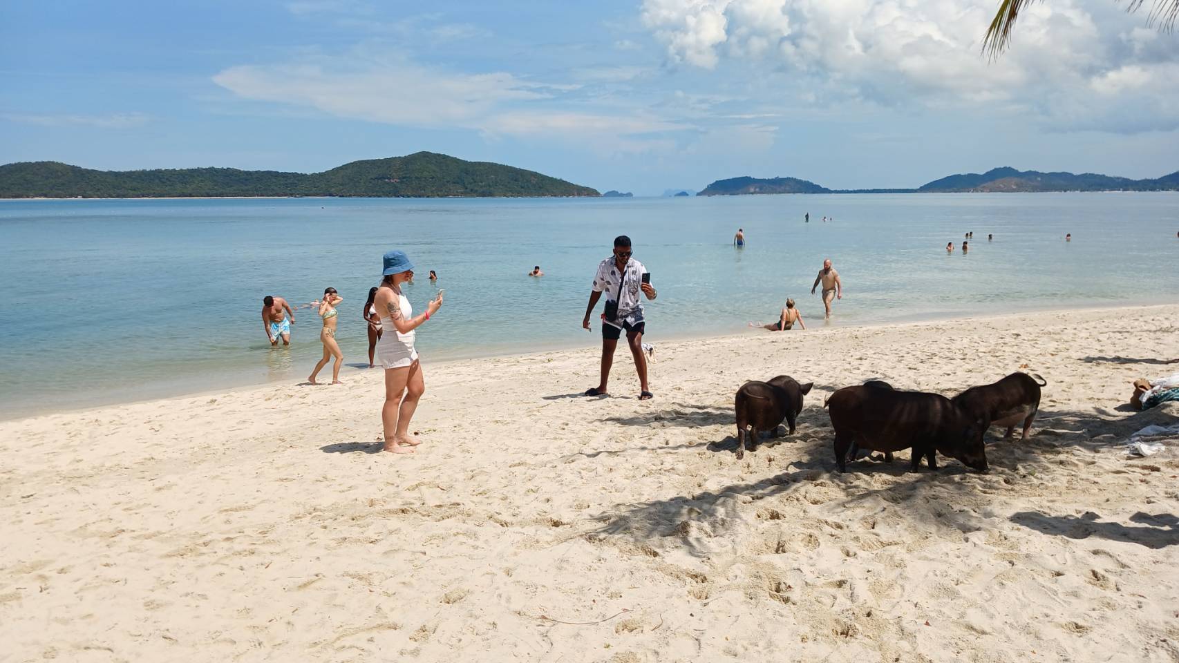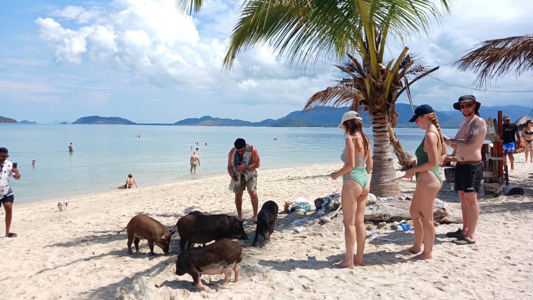 在 Koh Madsum(猪岛)与可爱的猪来张自拍