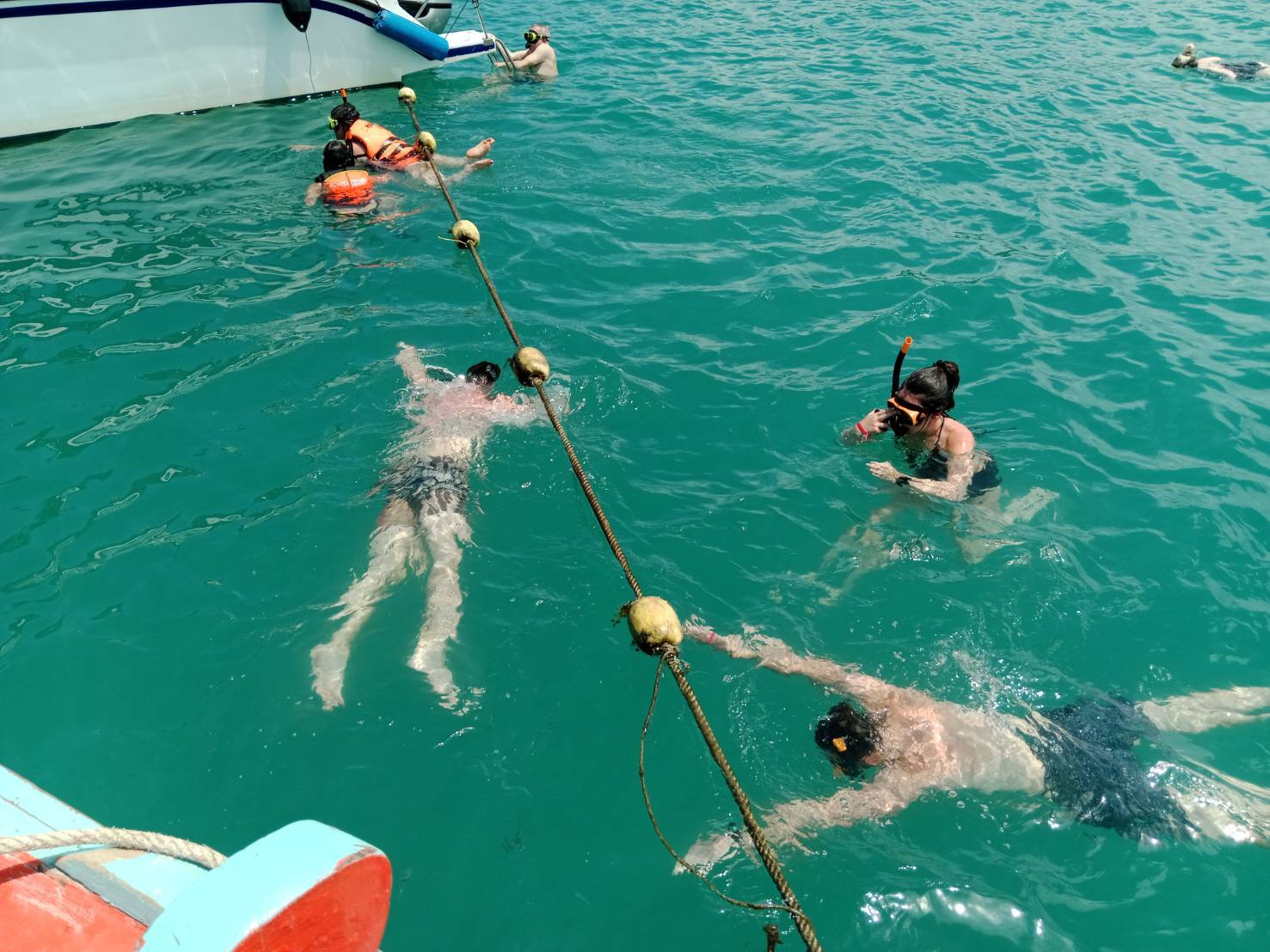 继续前往天岛进行游泳、浮潜和划橡皮艇等活动,然后享用午餐。在原始海滩上度过空闲时间,在水晶般清澈的海水中划皮划艇,欣赏未受破坏的风景。一整个下午后,返回通克鲁特码头并送回您的住宿。