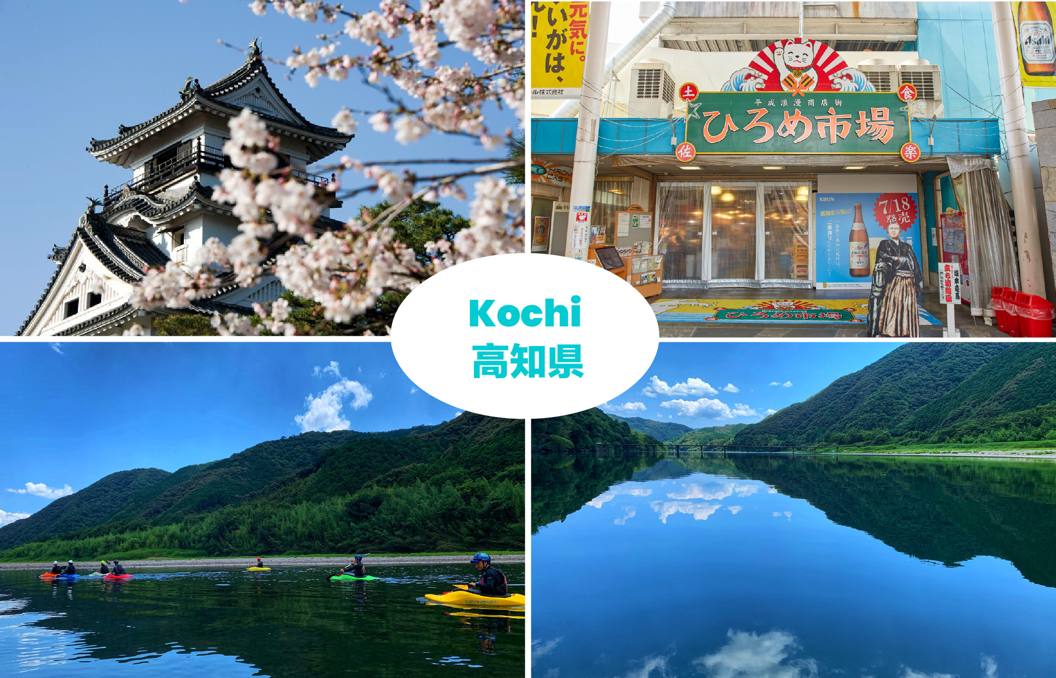 高知县热门景点:高知城、弘人市场、四万十川皮划艇和优美的河景