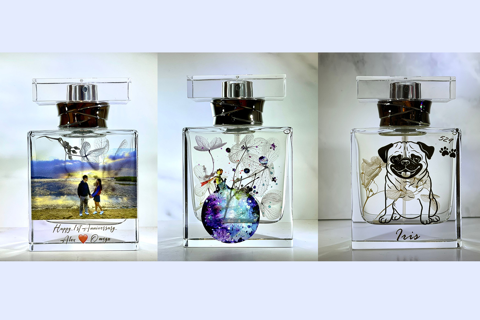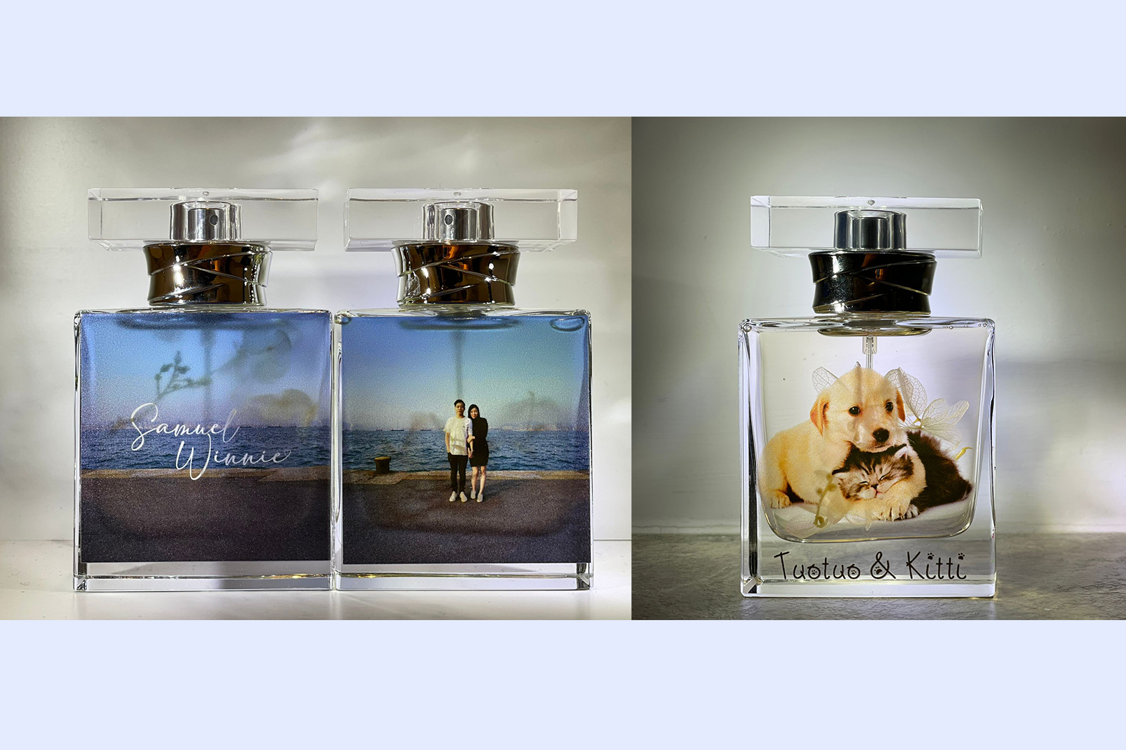 - 彩色打印图案于香水樽,可自行选择具记念价值一刻、座右铭等即场印制