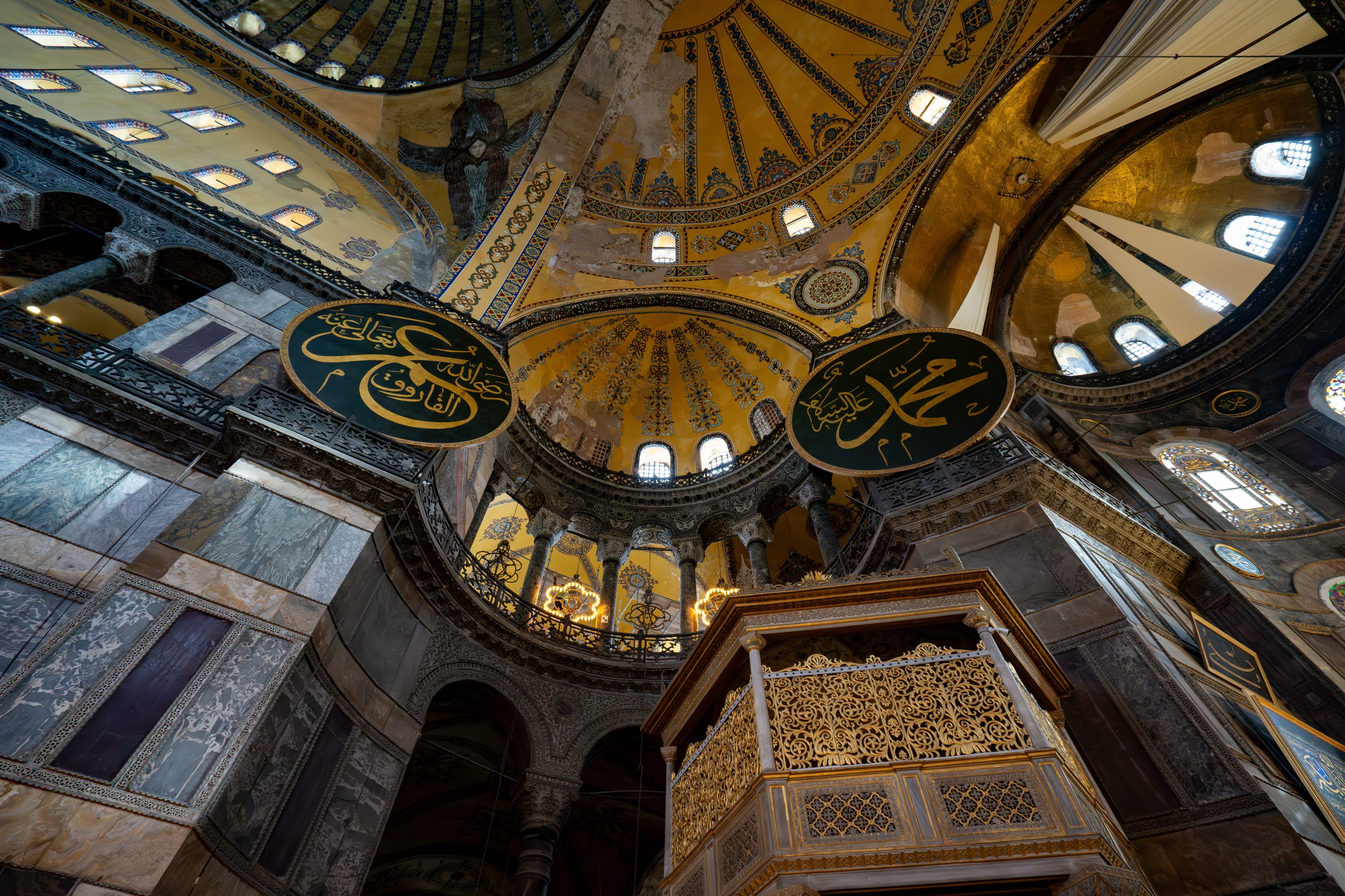 我们的第一站是圣索菲亚大教堂,它由拜占庭皇帝查士丁尼一世于公元六世纪建造。它最初是君士坦丁堡的一座东正教大教堂,在 1500 多年的时间里曾作为天主教堂、清真寺和博物馆。
