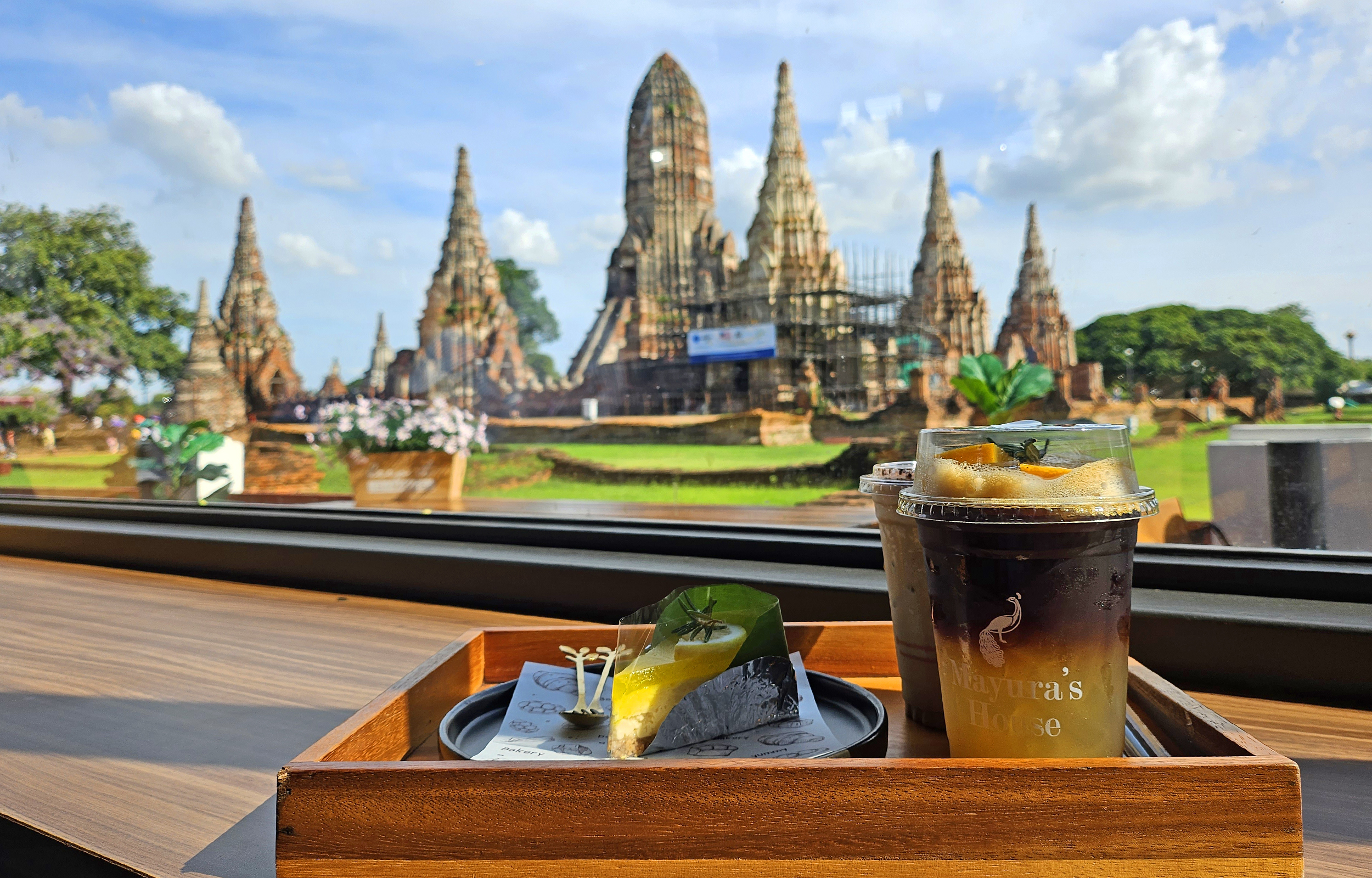 享受咖啡时光,欣赏大城府的古庙景观
