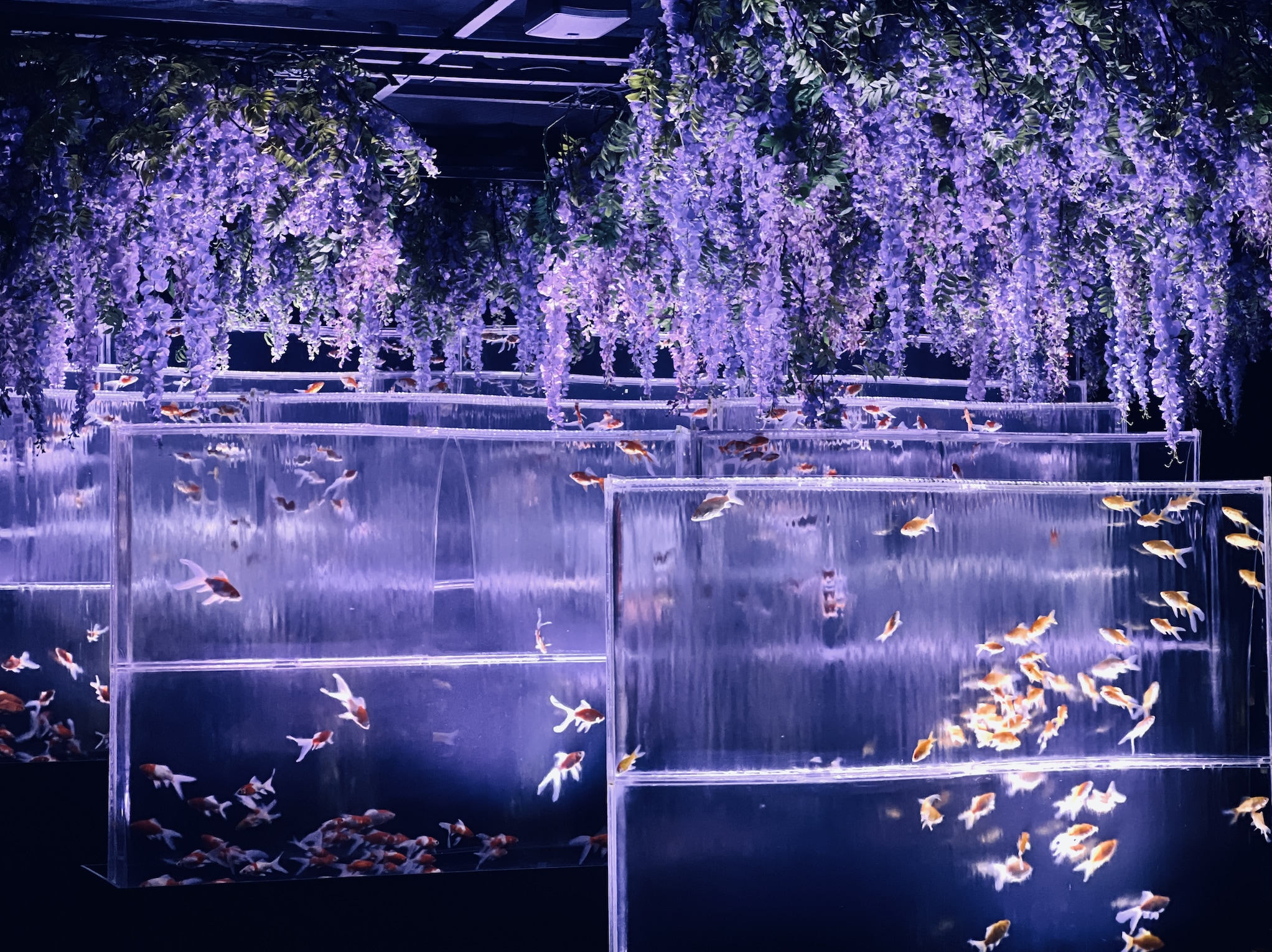 金鱼是观赏鱼,赏金鱼文化源于中国,江户时代在日本盛行。金鱼经由繁殖培育后,衍生出各种颜色、鳍形、眼睛、体型不同的品种,同一品种甚至还有不同花色图案,对于金鱼爱好者来说有如「活艺术品」。除了赏金鱼,祭典必备的捞金鱼活动在日本传统文化上也拥有一定地位。银座艺术水族馆内展示的金鱼多达70种,其中30种为国家认证品种。数千条金鱼在各式精心设计的艺术鱼缸里悠游舞动,展示独一无二的表演艺术。