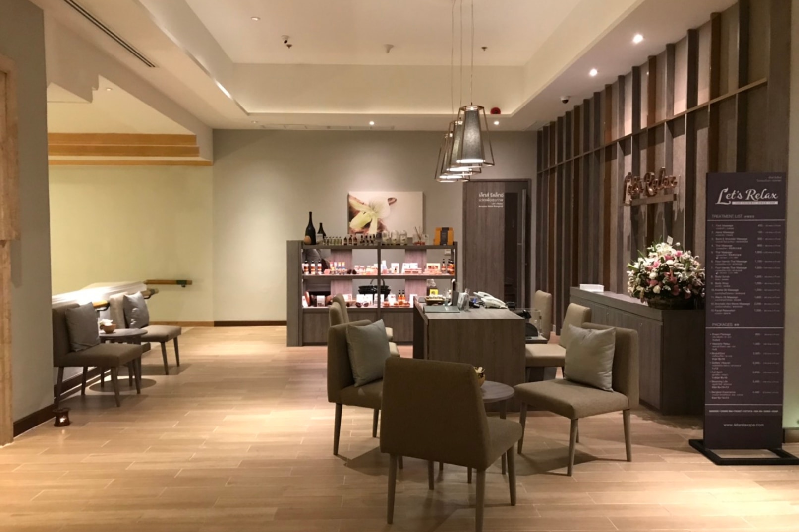 Let's Relax Spa Bangkok Arnoma Grand Hotel位于曼谷最繁华的地区之一,靠近中央世界和水门区。气氛以温暖的大地色调装饰,给人一种自在的感觉。 Let's Relax Spa Bangkok Arnoma Grand Hotel 适合任何想要远离城市喧嚣并享受完美放松护理的人。