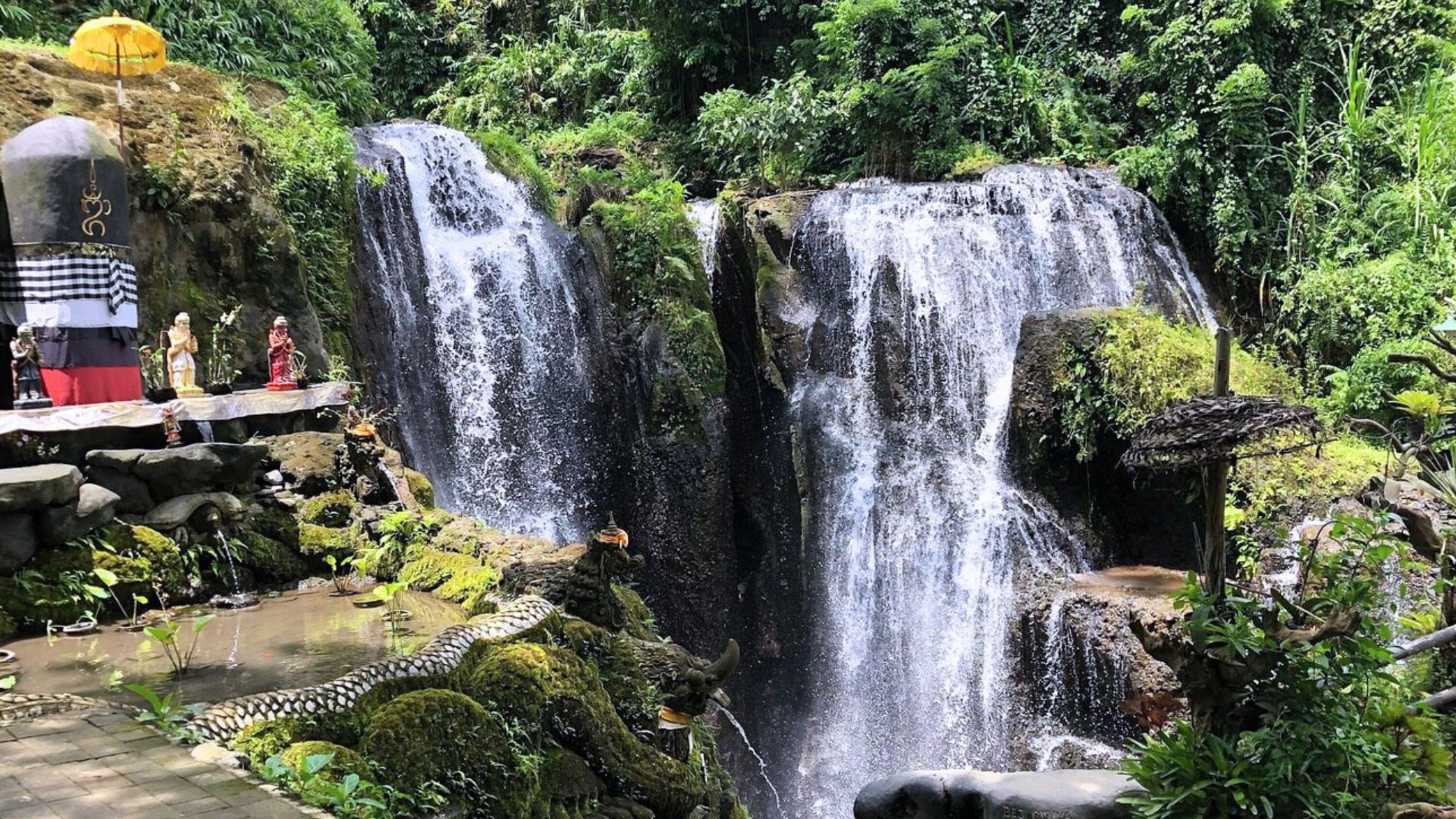 在 Taman Beji Griya 瀑布体验净化和内心的平静,这里自然与精神融为一体。