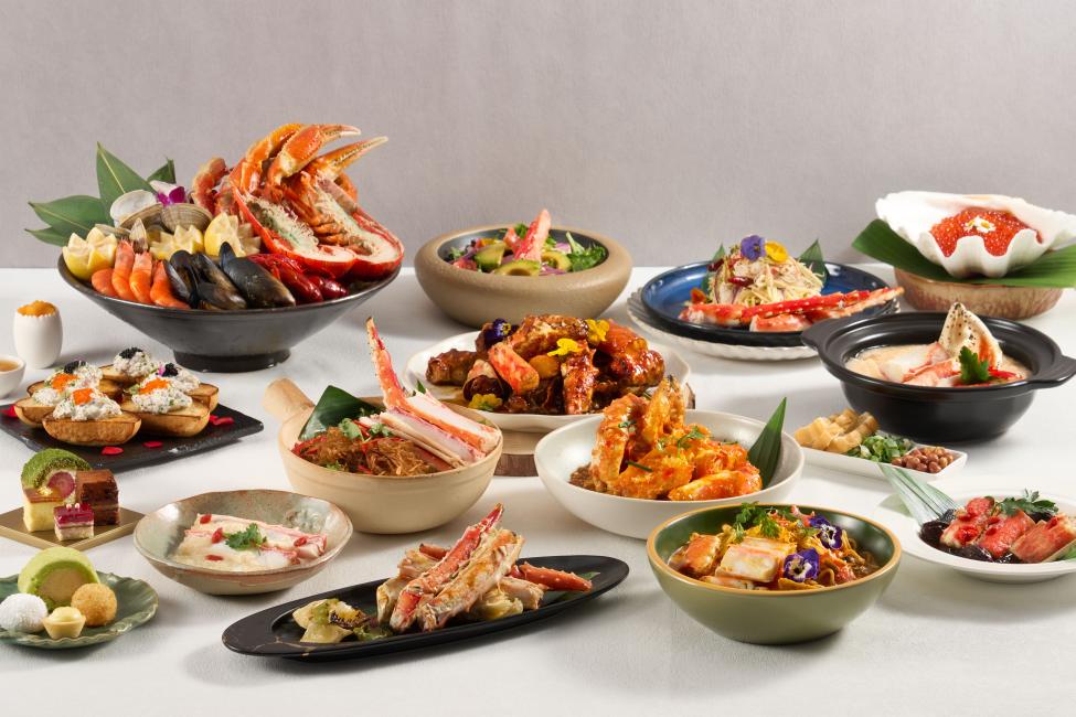 * 尽情品尝人气阿拉斯加皇帝蟹美馔及多款诱人龙虾佳肴,当中包括晚市限定的四川藤椒炒蓝龙虾及招牌新加坡式炒黑胡椒蟹、西班牙龙虾海鲜烩饭(午市及晚市皆供应)。由2025年4月8日至5月25日,特别呈献与釜山乐天酒店及曼谷悦榕庄携手合作的驻店名厨匠心之作,带来正宗韩国及泰国风味。午市限定推介包括泰式和牛船面/人参鸡肉鲍鱼面及韩式炒牛肉,晚市限定包括泰式黄咖哩炒软壳蟹及韩式竹筒牛肋骨。