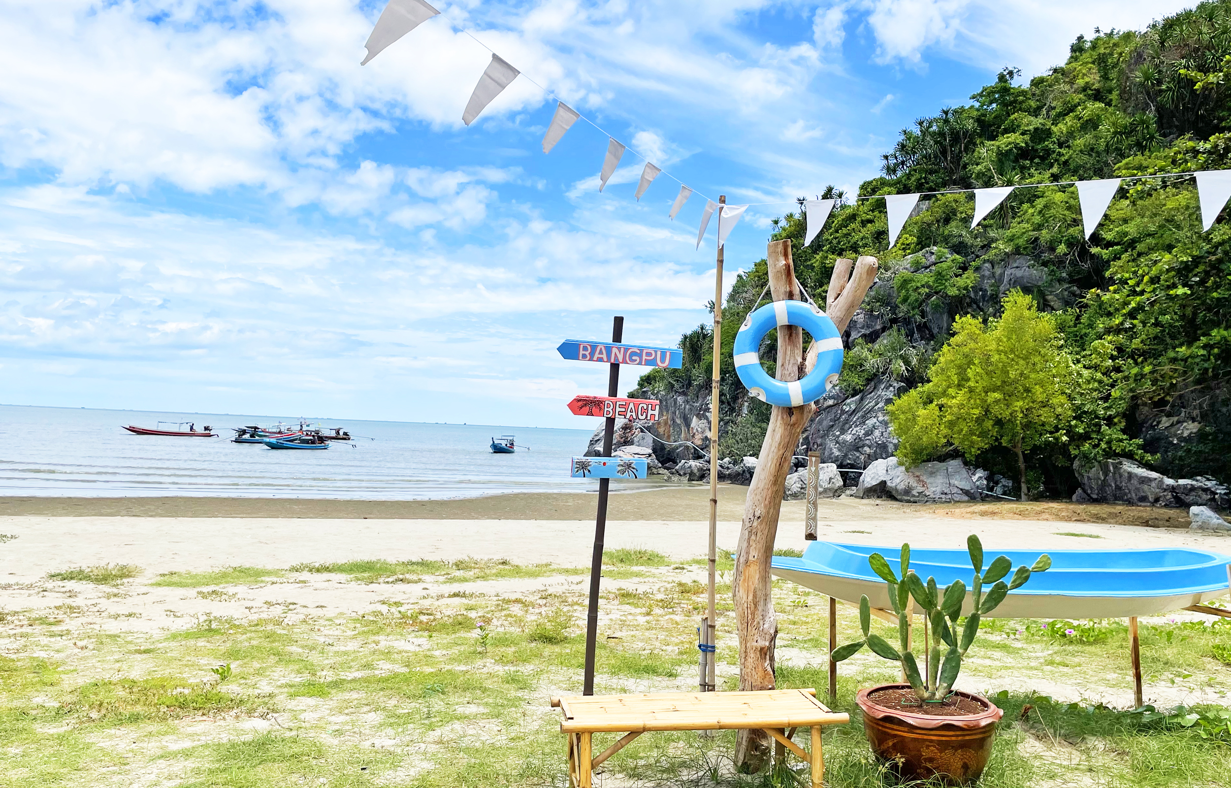 在 Bang Pu 海滩的餐厅一边欣赏海景一边享用午餐