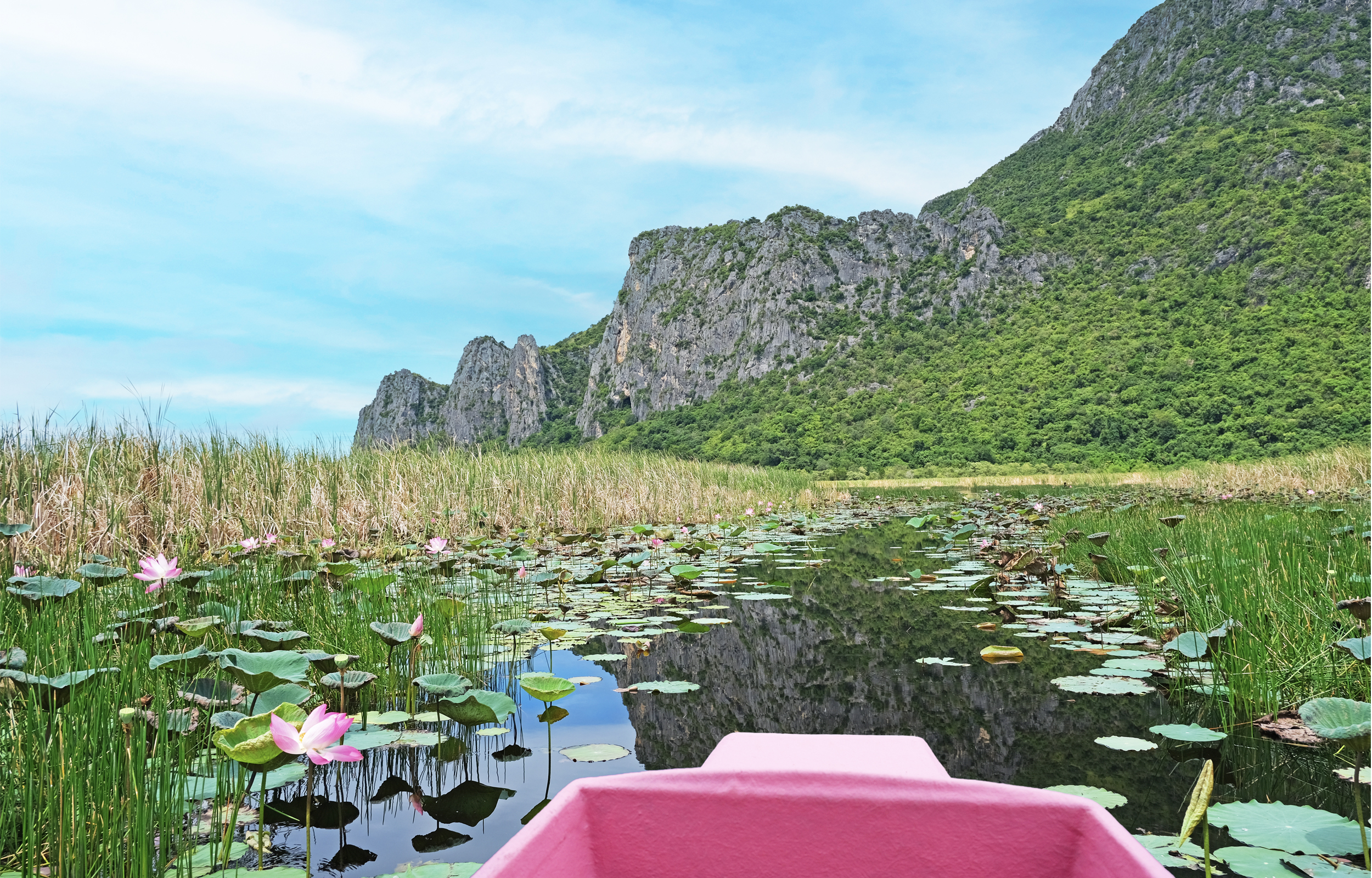 乘船游览 Thung Sam Roi Yod,欣赏美丽的荷塘,欣赏周围令人惊叹的景色