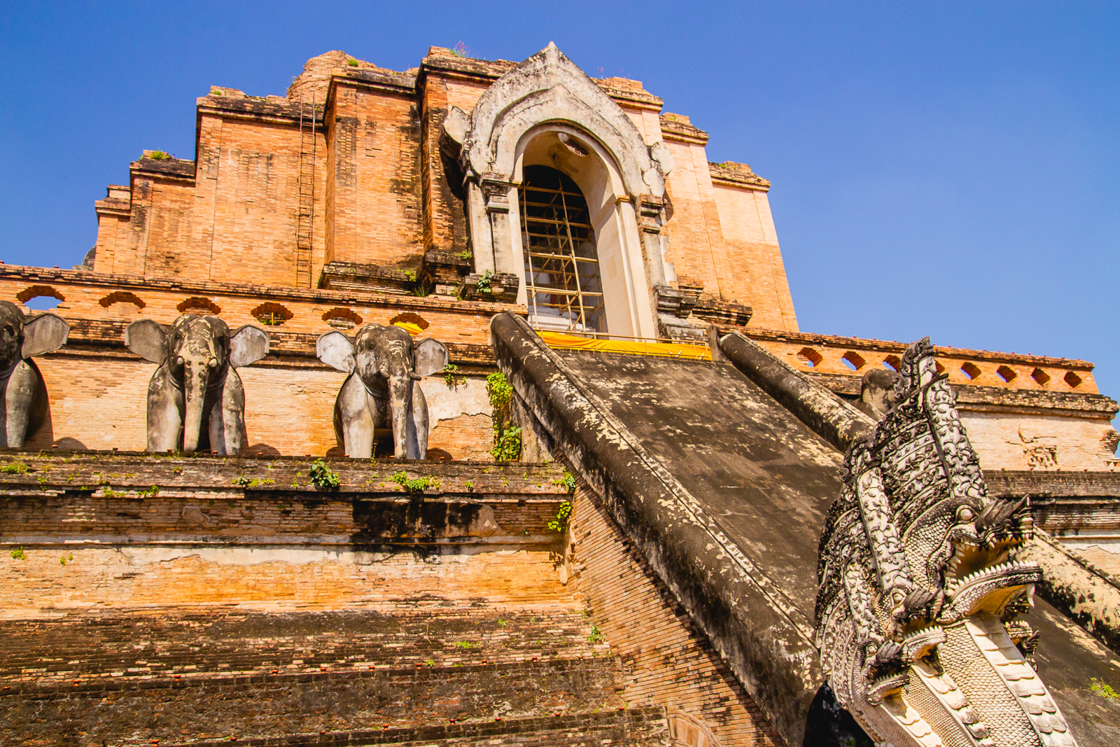 Wat Chedi Luang 是一座令人印象深刻的著名寺庙,以拥有该市最大的佛塔和美丽的戒堂而闻名