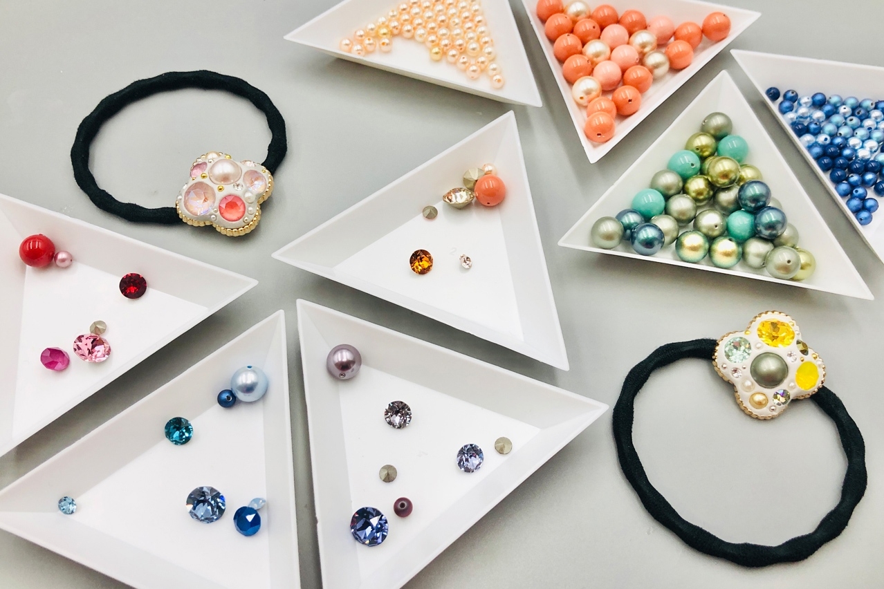 晶钻花朵发圈(上课现场提供丰富多款色系水晶及水晶珍珠 发挥创造力 自由创作)
