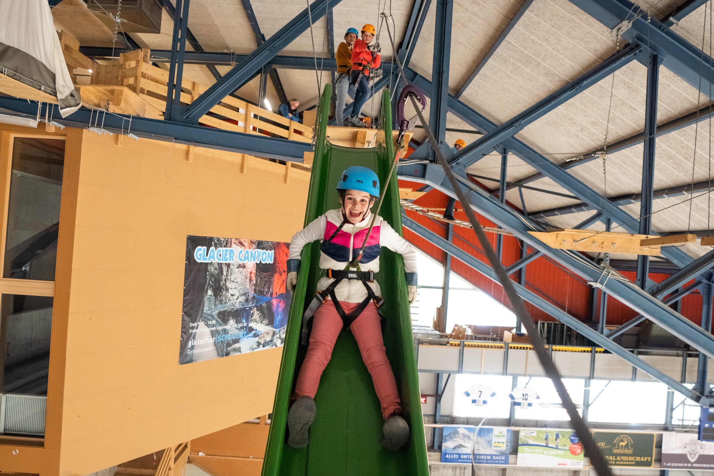格林德瓦室内绳索公园是位于瑞士格林德瓦的一座室内冒险乐园,为各个年龄段和技能水平的游客提供各种绳索课程和攀岩活动。公园设有一系列高空绳索课程、障碍和挑战,让参与者可以在安全的室内环境中测试他们的敏捷性、力量和平衡能力,而不受室外天气的影响。使用室内绳索公园不需要特定的健身水平。室内绳索公园的所有参与者都将获得必要的设备,并由工作人员指导。