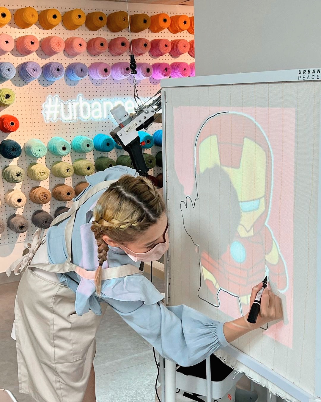 **URBANPEACE**系全港第一间首创无重力Tufting店,地毡枪从高处吊下,大家只需轻拉一下便可随意上下移动地毡枪,单手操作都无问题,对比传统手持式Tufting会轻松好多,初学者比较容易掌握,令制作过程更为舒适。