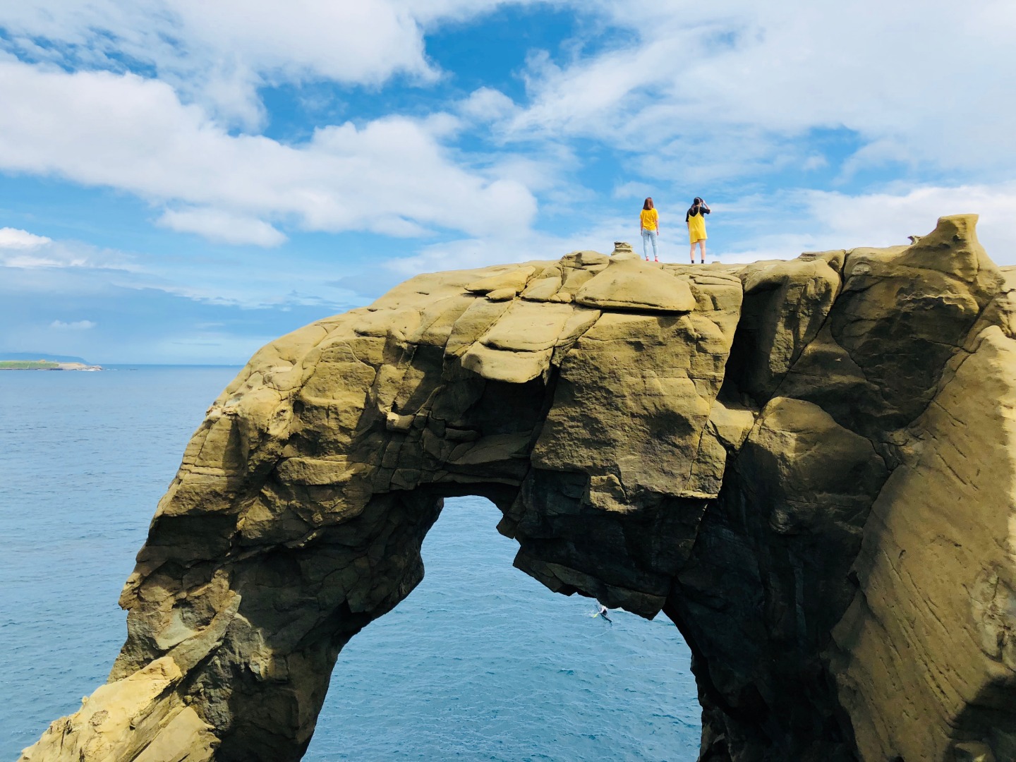 与情人一同在老梅绿石槽迎着徐徐微风,眺望迷人海景