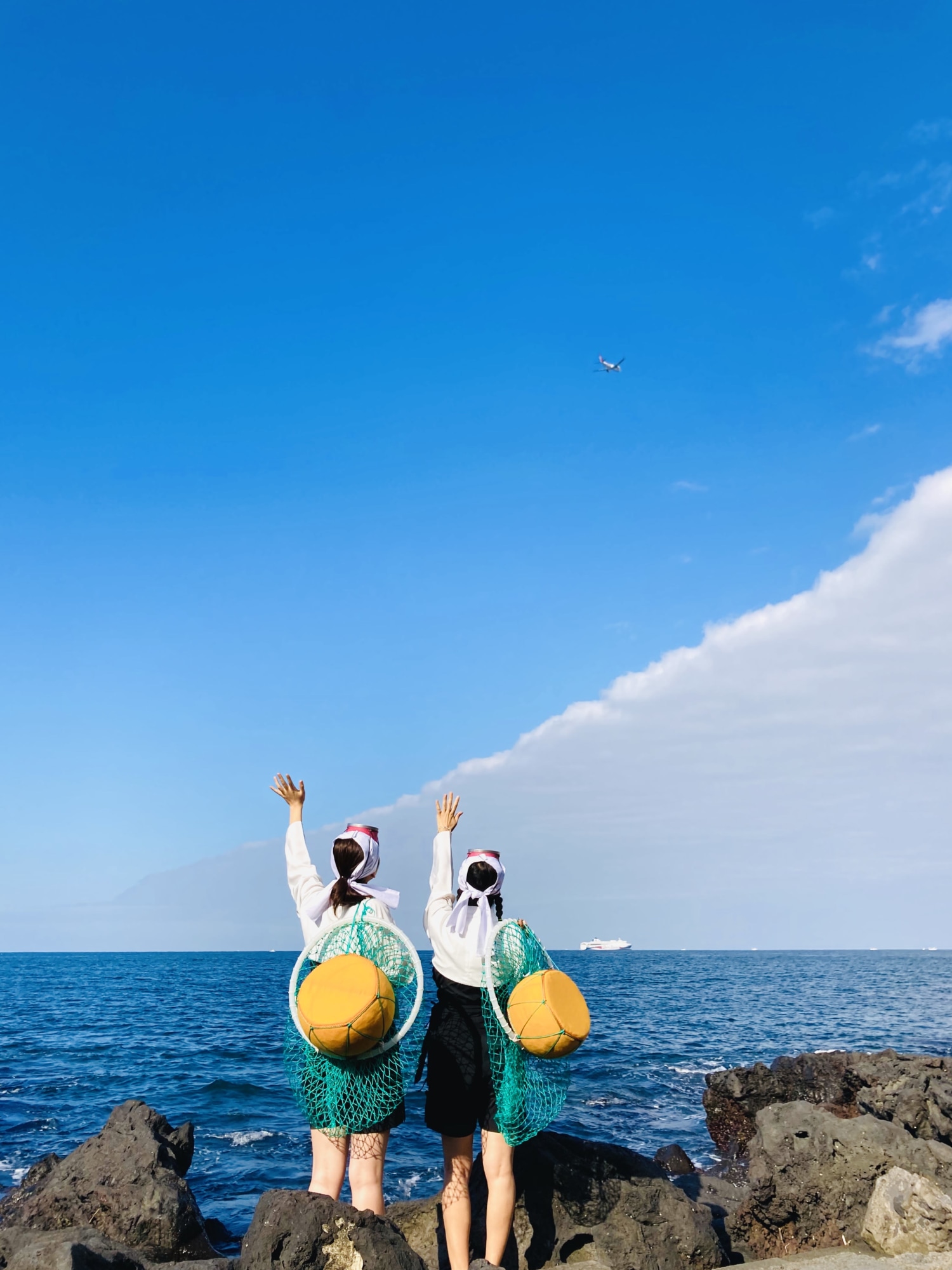 在济州岛穿上传统的海女服饰,留下难忘的生活照。