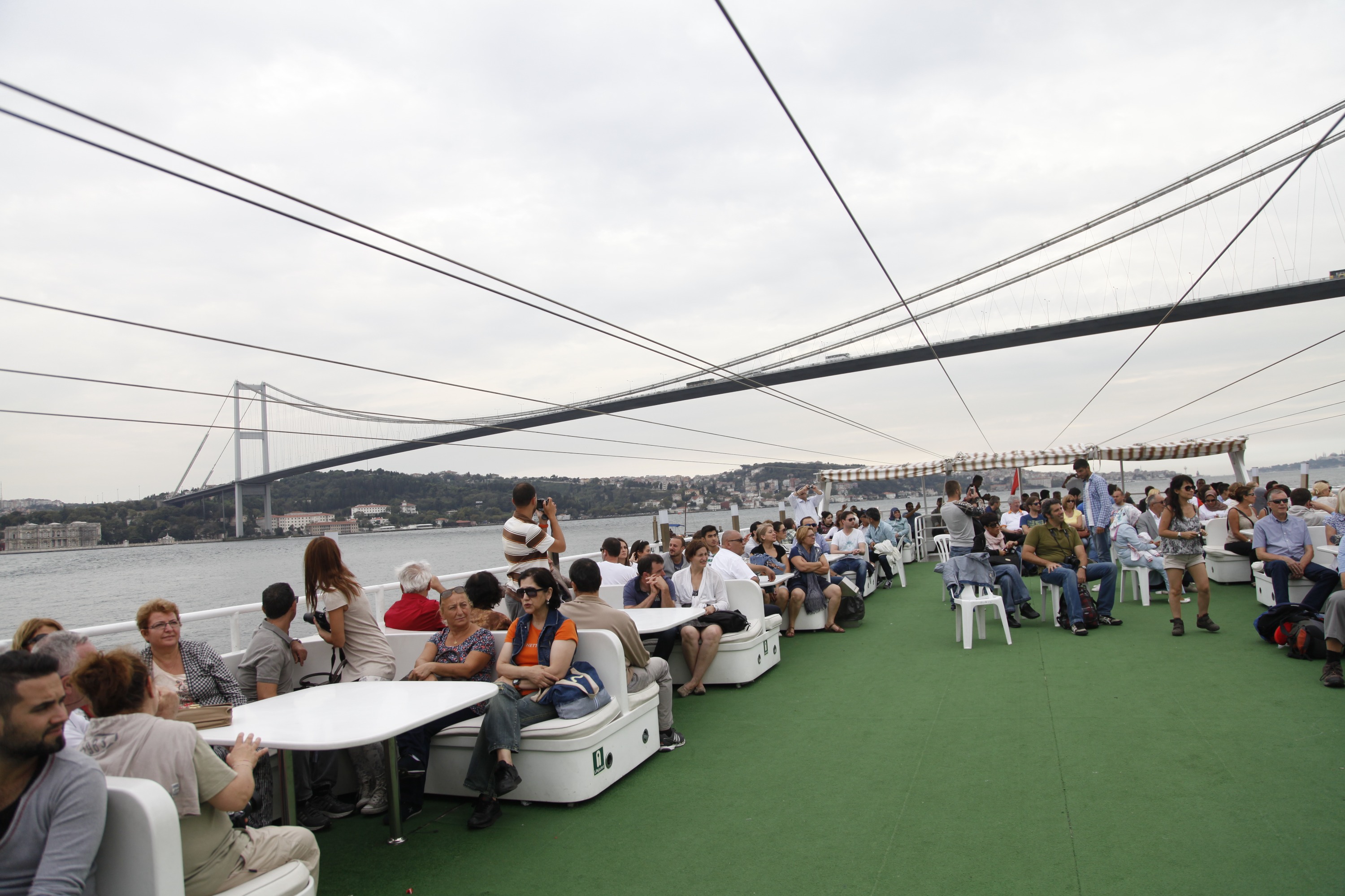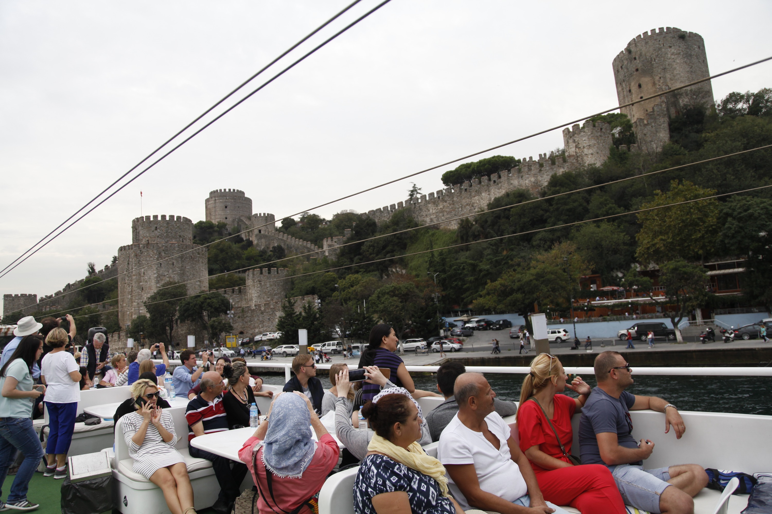 乘坐博斯普鲁斯海峡游船,从海上欣赏城市风光。拍摄金角湾、托普卡帕宫、多尔玛巴赫切宫、圣索菲亚大教堂、少女塔、加拉塔塔、蓝色清真寺和奥塔科伊清真寺的照片。