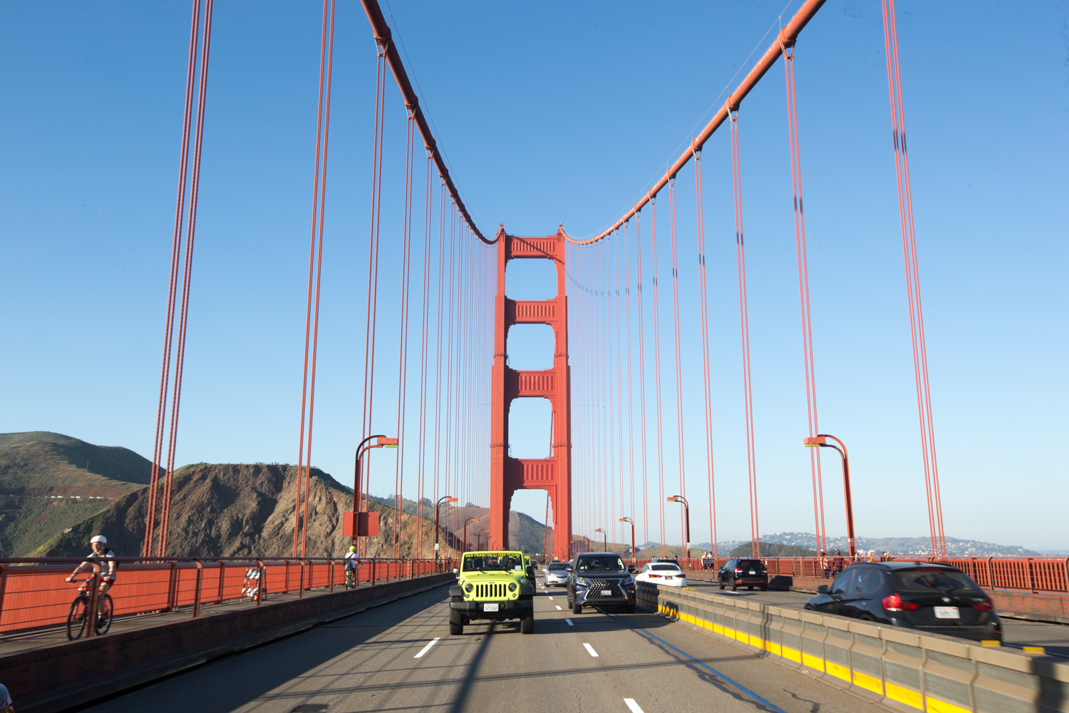 在有趣的导游的带领下,乘坐亮绿色敞篷吉普车开始 3 小时的私人团体旅游。旅程从穿过金门大桥开始,欣赏旧金山湾的壮丽景色。旅游向北前往美丽的马林县,这里是穆尔森林国家纪念碑的所在地。