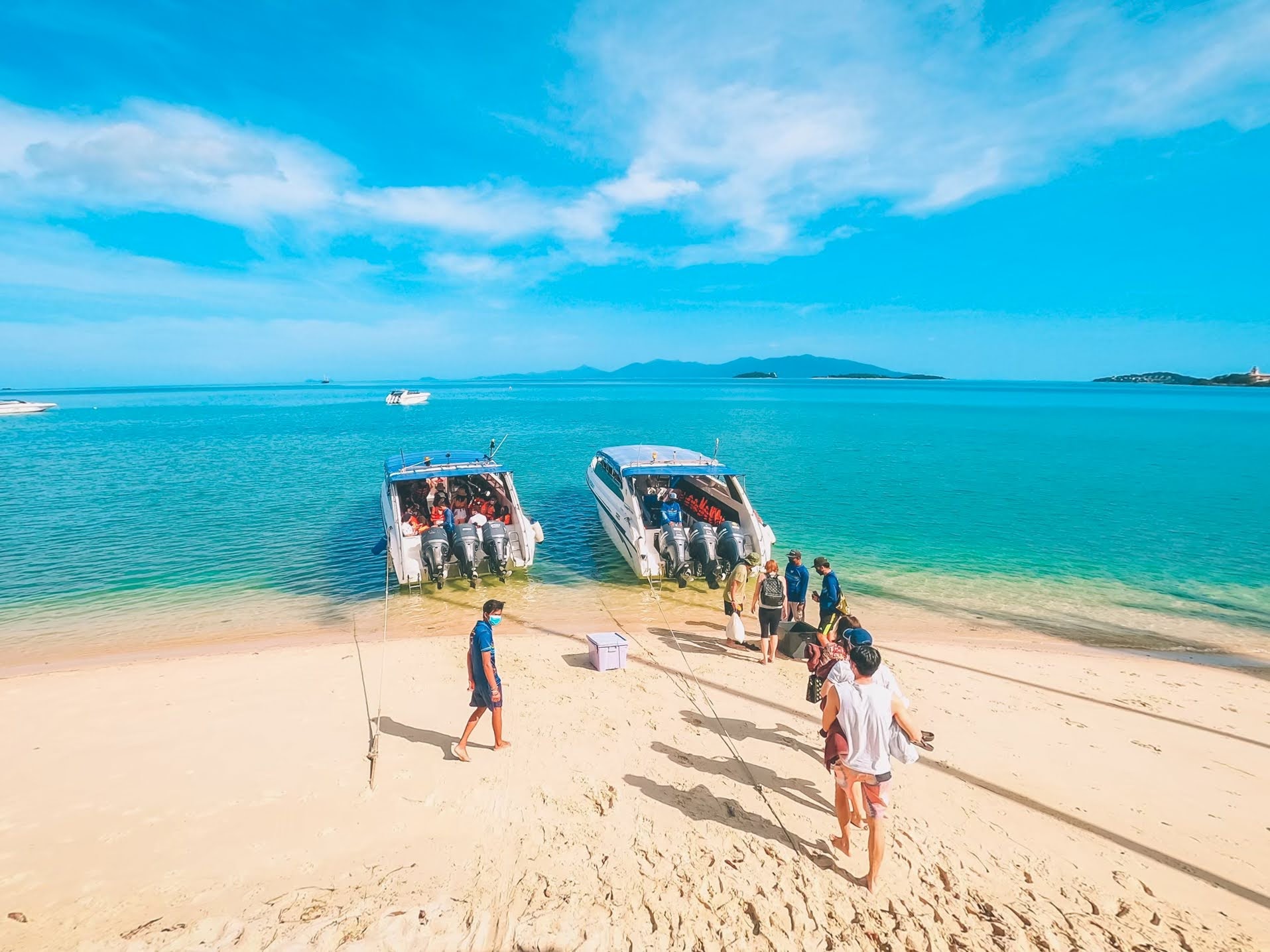 Insea Speedboat 和蔼可亲的团队将乘坐小型货车从您的酒店大堂接您,并将您带到 Bang Rak 的私人码头。快速筛查 COVID-19 后,从导游那里获取有用的信息并享用清淡的早餐,然后乘快艇前往 Ang Thong 海洋公园。