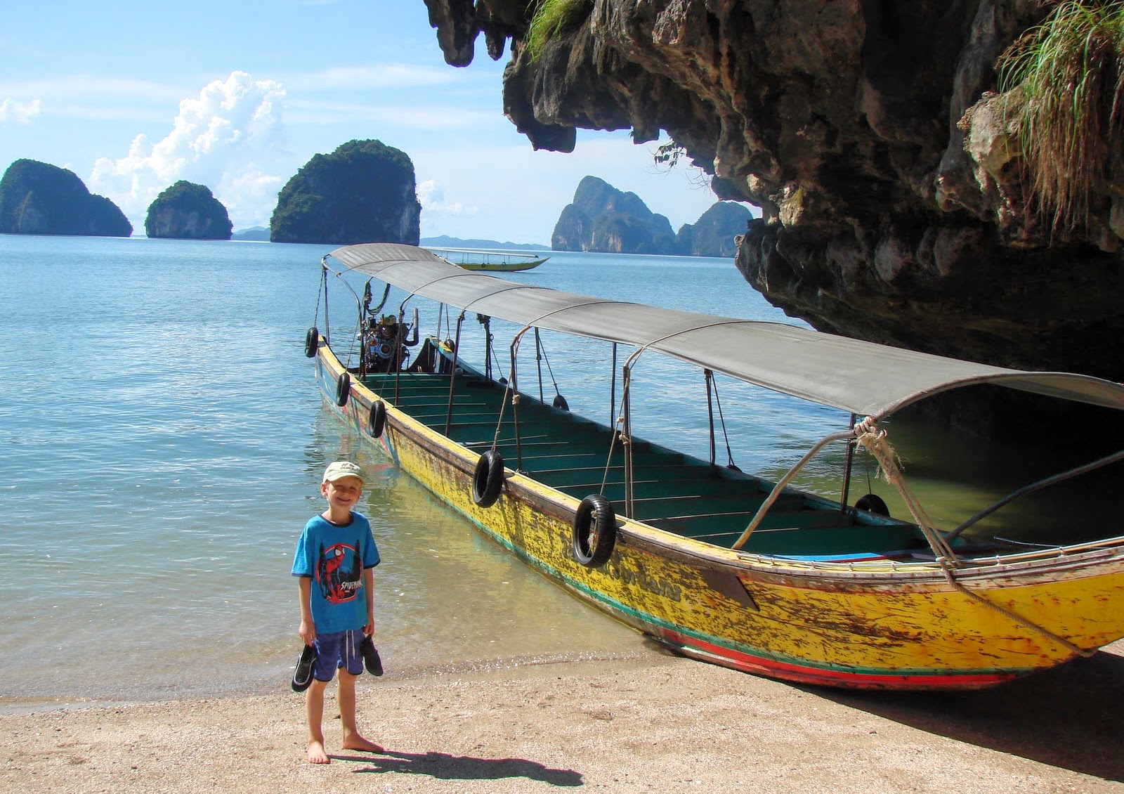 乘坐方便的大型长尾船从 Surakul 码头到詹姆斯邦德岛
