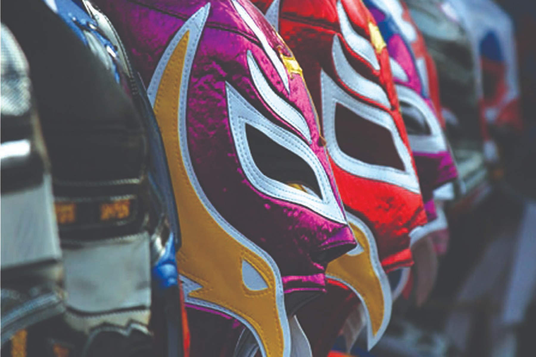 观看墨西哥摔跤手戴着不同颜色和设计的面具走上竞技场