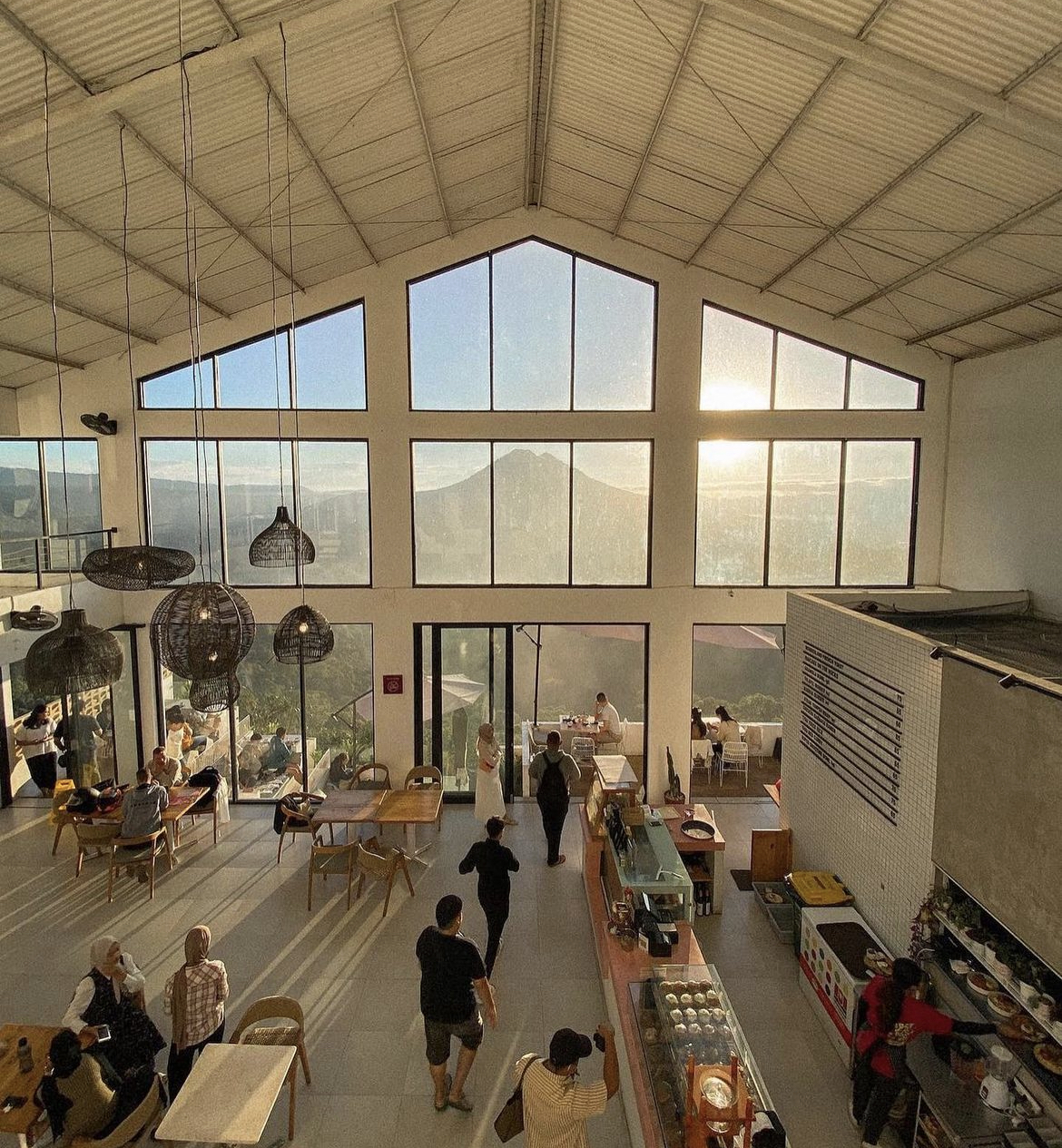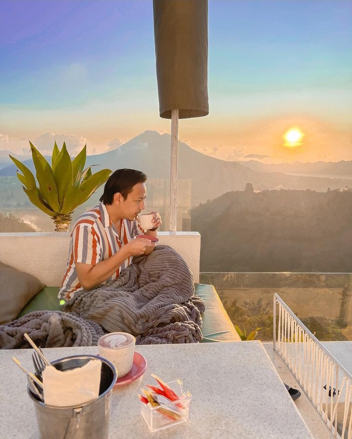 Ritatkala Batur 咖啡厅从用餐场所可以欣赏到巴杜尔山的景色