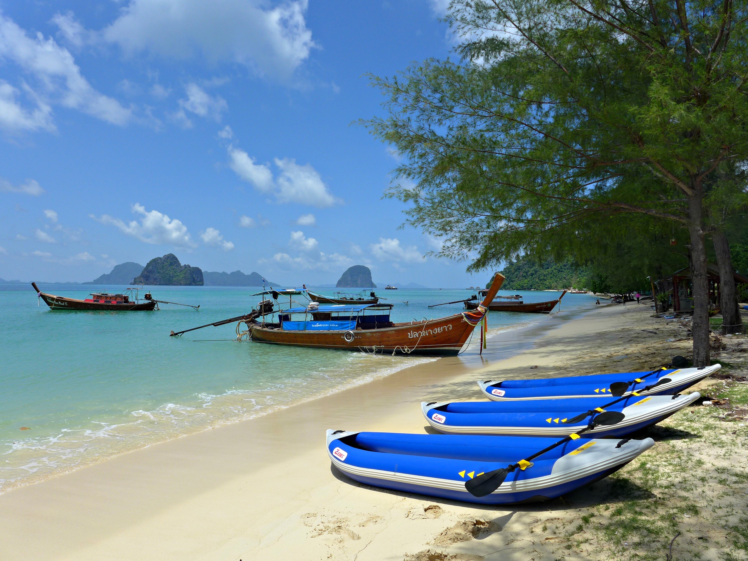 乘坐标志性的长尾船游览兰达岛附近的 4 个岛屿。在 Koh Chueak 和 Koh Maa 停留,享受壮观的开放水域浮潜,然后沿着 Koh Ngai 的白色沙滩漫步。游览的亮点是穆岛的翡翠洞,游泳 80 米即可到达岛内隐藏的泻湖。
