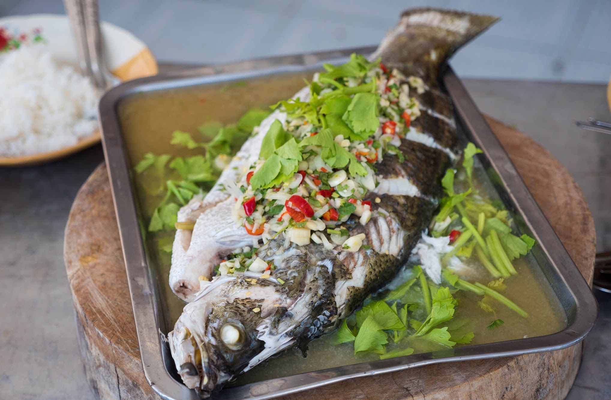 是时候在甲米河畔 Baan Kanon 附近的一家当地水上餐厅停下来享用美味的午餐,包括新鲜的鱼。