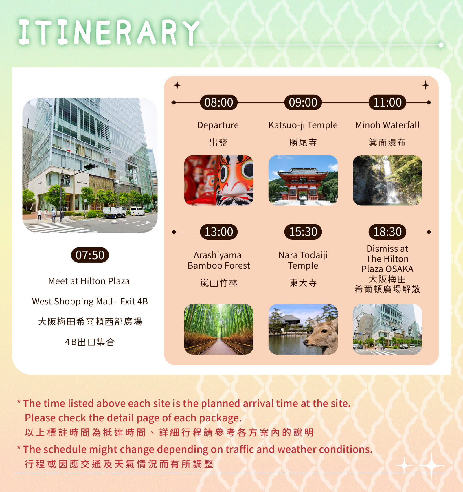 # 【大阪打卡热点】胜尾寺 x 箕面瀑布 x 岚山竹林 x 东大寺&奈良公园一日游
