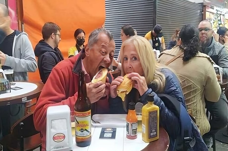 在圣保罗的街道上,一边品尝酥脆的粉彩,一边欢笑