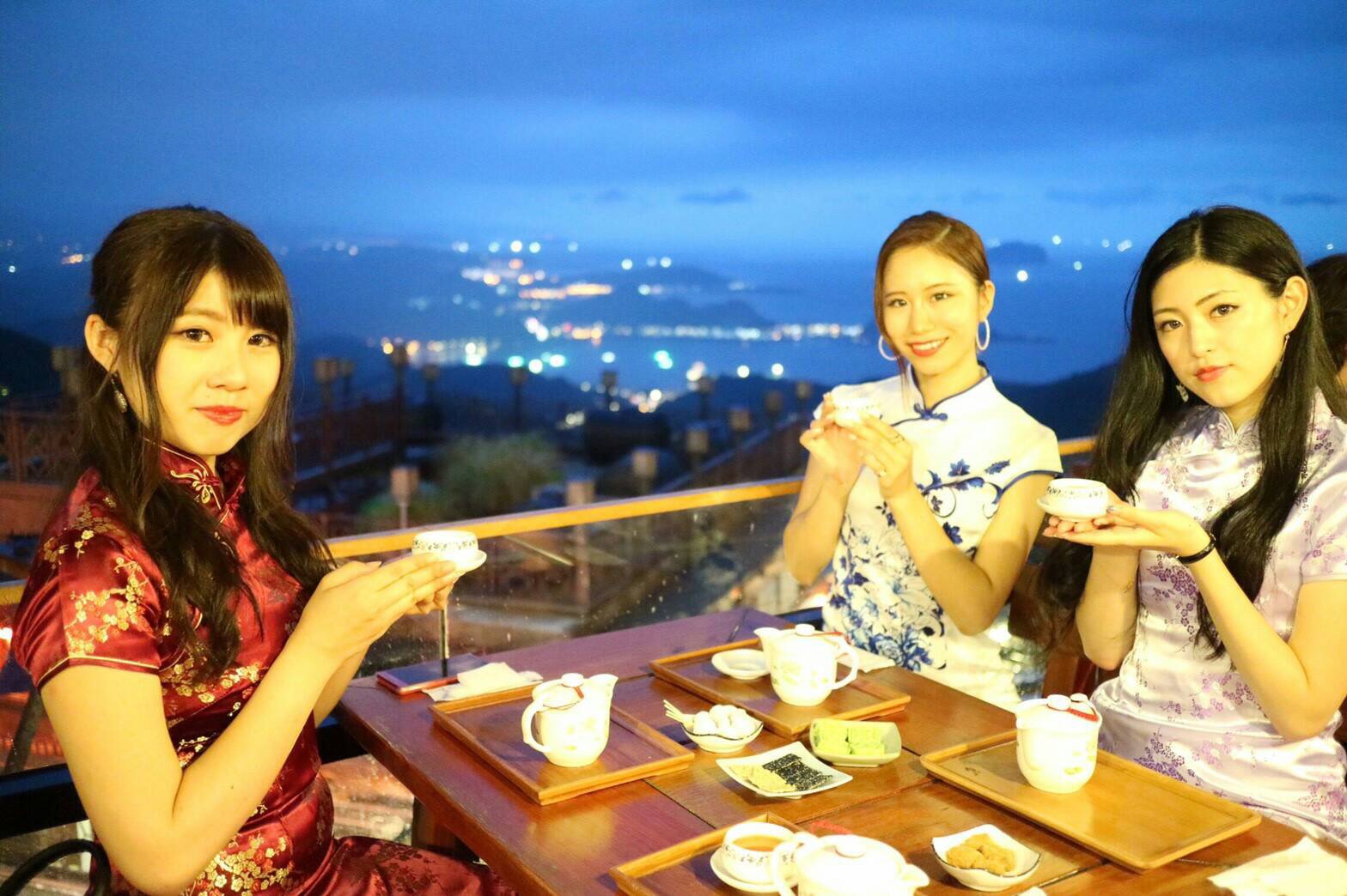 独特旧式建筑、坡地与高低错落的房屋,九份就是如此充满怀旧风情之地。穿着旗袍步行在九份老街,穿梭于大街小巷,必定更能体会电影《悲情城市》的韵味,更能感受山城古色古香的艺术之美。九份旗袍体验是走进九份的最佳方式,坐在茶楼上,背倚九份夜景,边泡茶、边聊天,吹来悠悠的凉风,享受这样放松惬意的感觉。