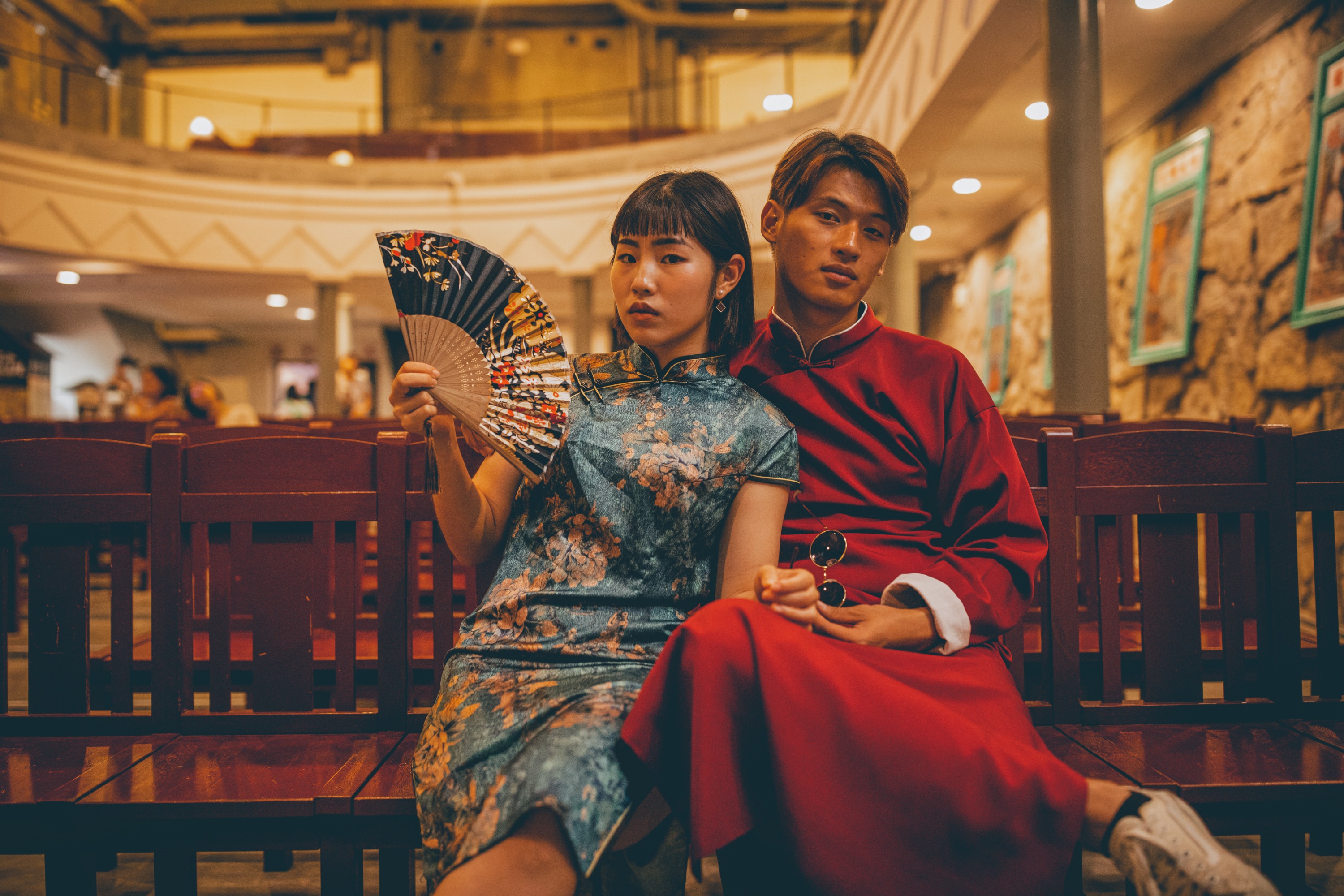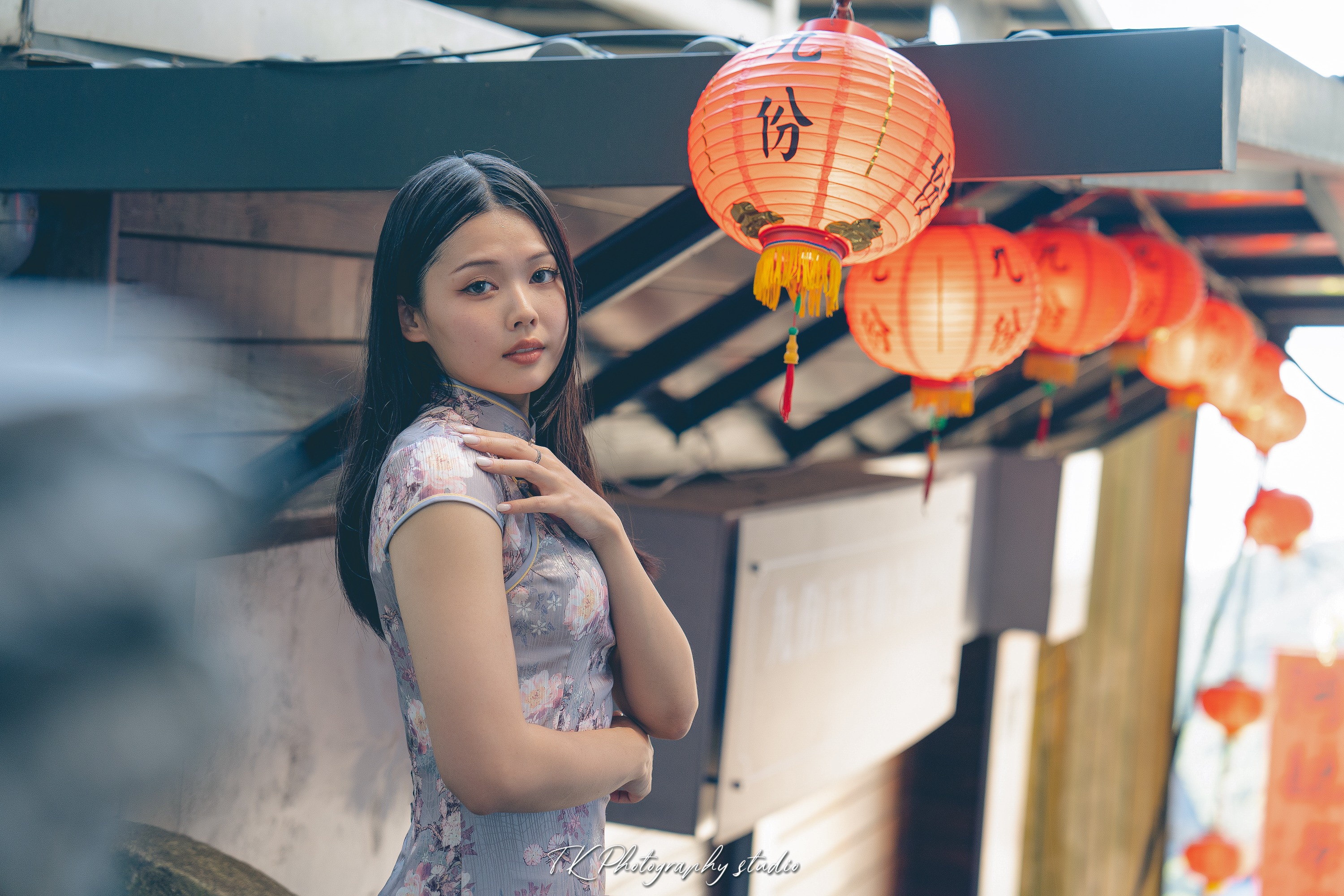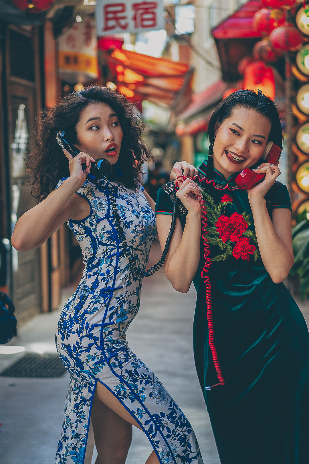 穿着旗袍穿梭九份大街小巷