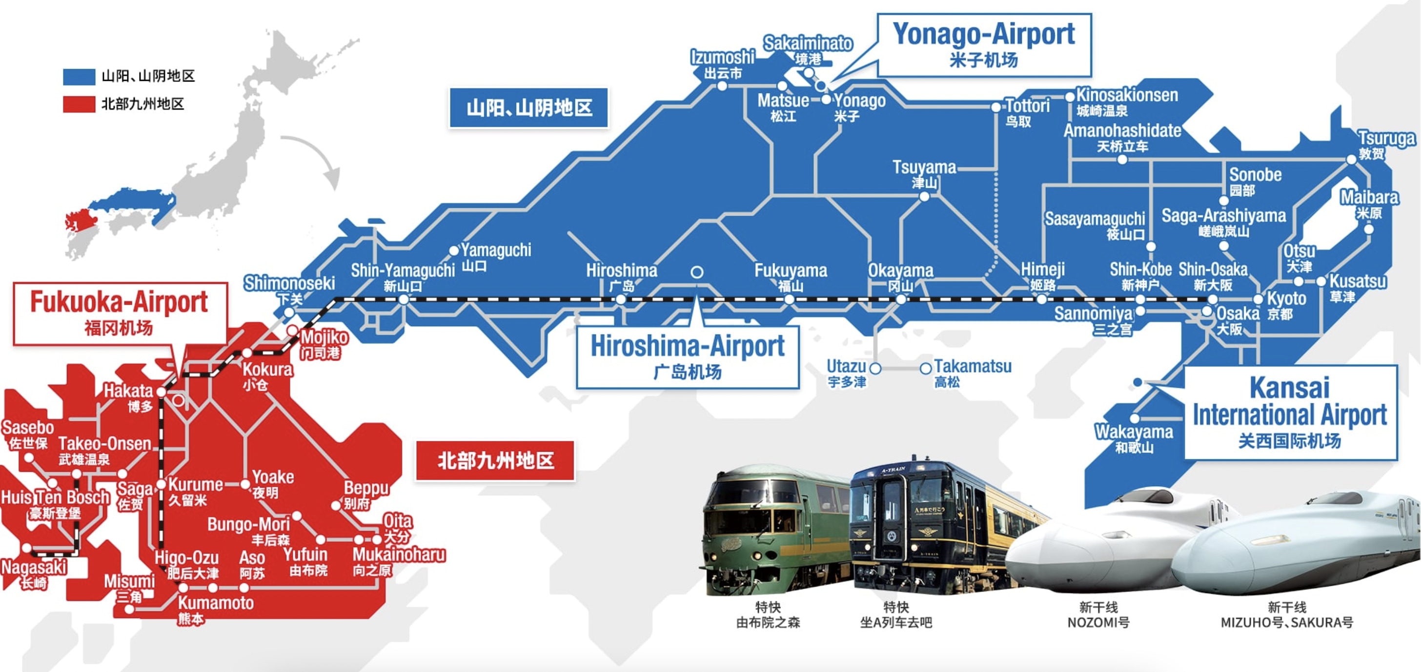 JR 山阳 & 山阴 & 北九州地区铁路周游券路线图
