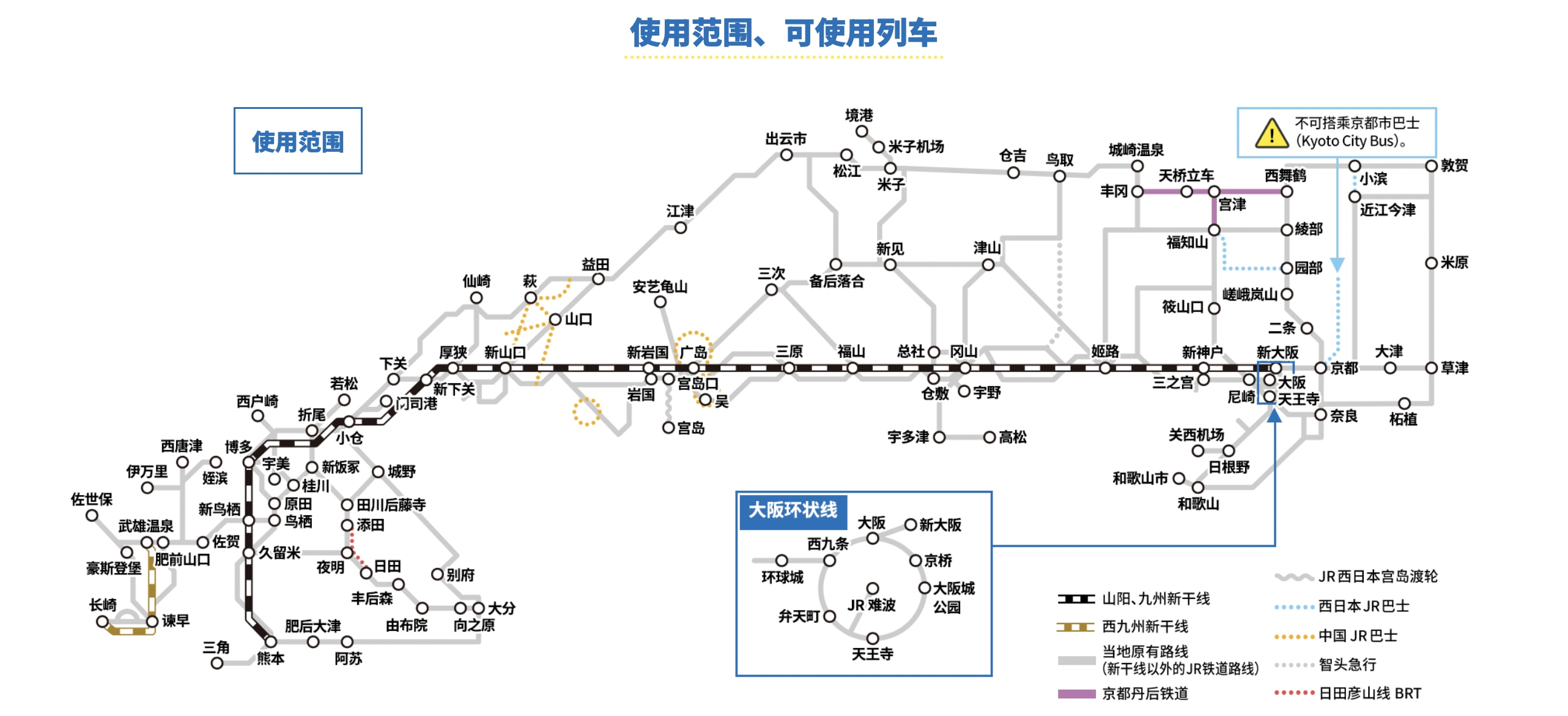 # **JR 山阳 & 山阴 & 北九州地区铁路周游券包含什么?**