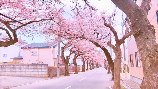 冬季的严寒让北海道的樱花变得色彩缤纷。