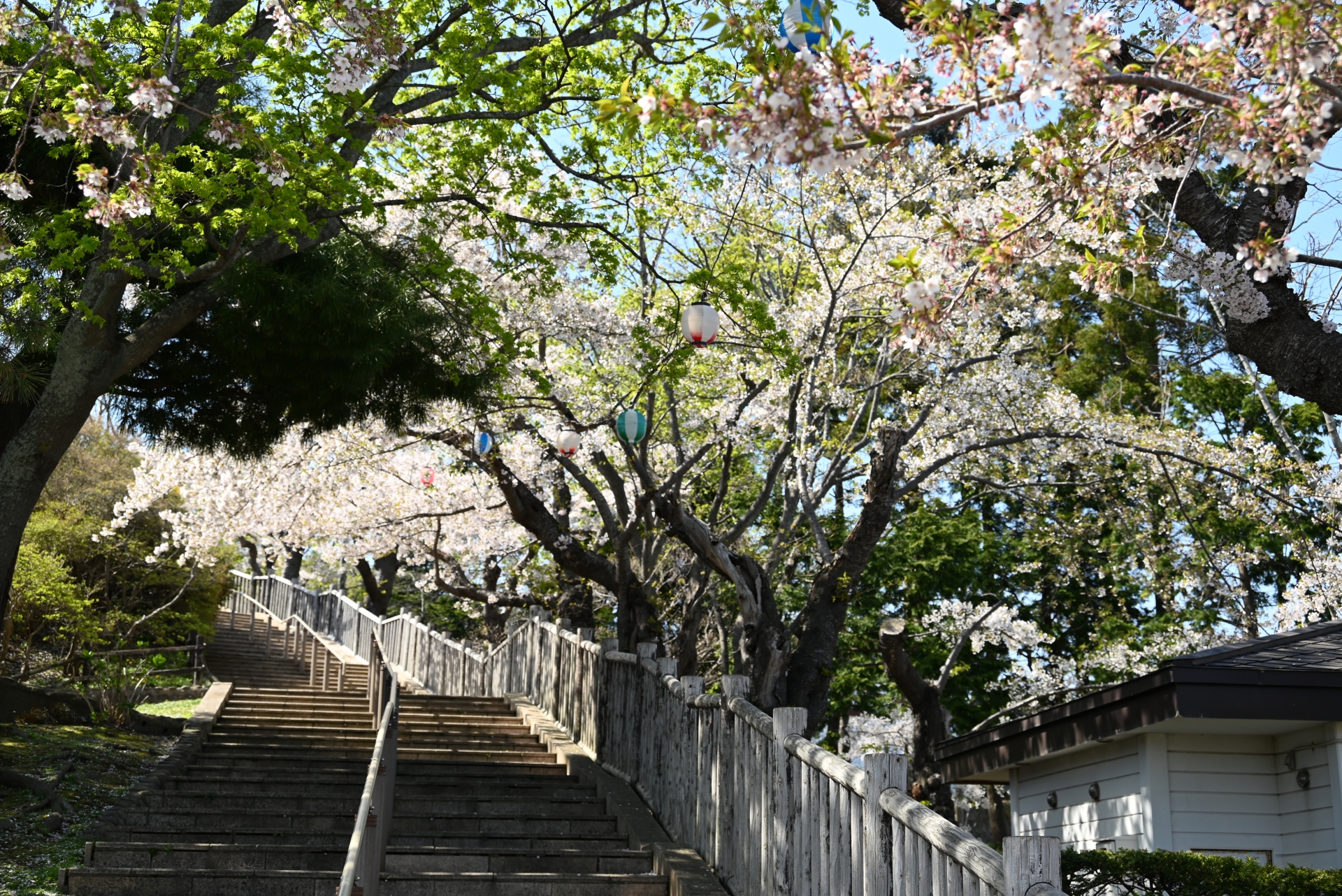 以函馆为背景,游客可以在公园内的明治山欣赏津轻海峡的全景,公园内约360棵樱花树同时盛开。深受儿童和成人喜爱的赏花胜地。