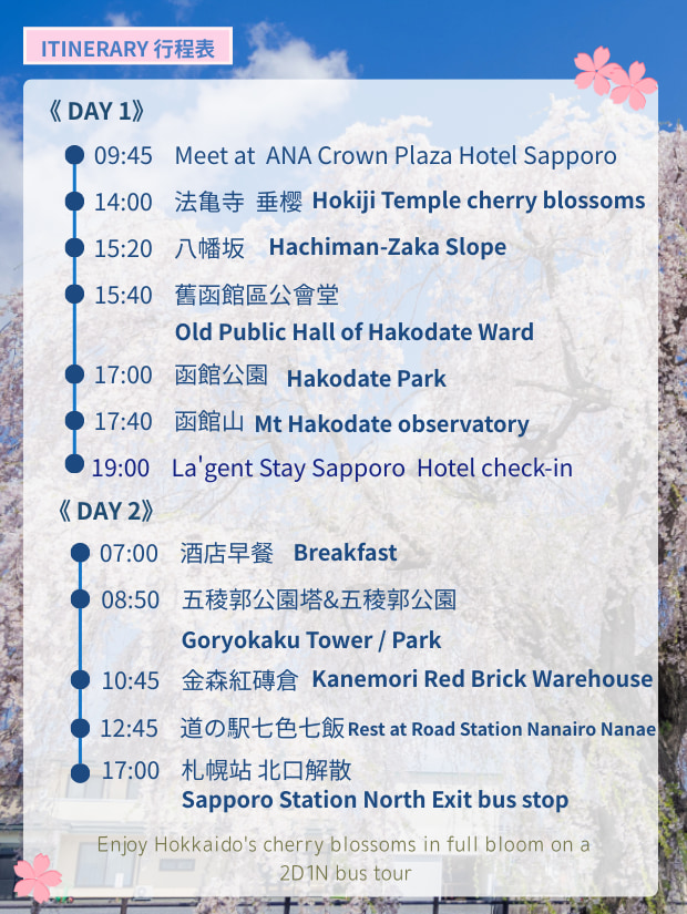 北海道函馆 2 天 1 夜樱花巴士之旅(札幌出发)