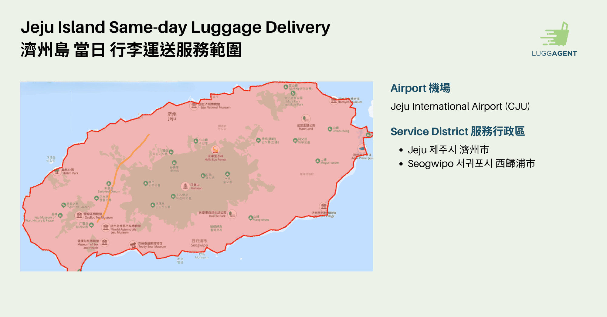 济州岛行李运送服务(往/返机场/市区)- LuggAgent 提供
