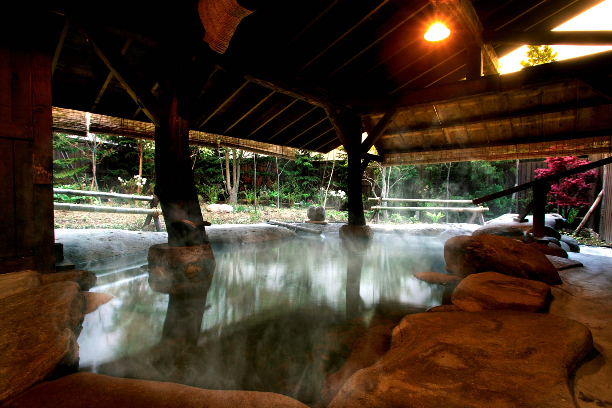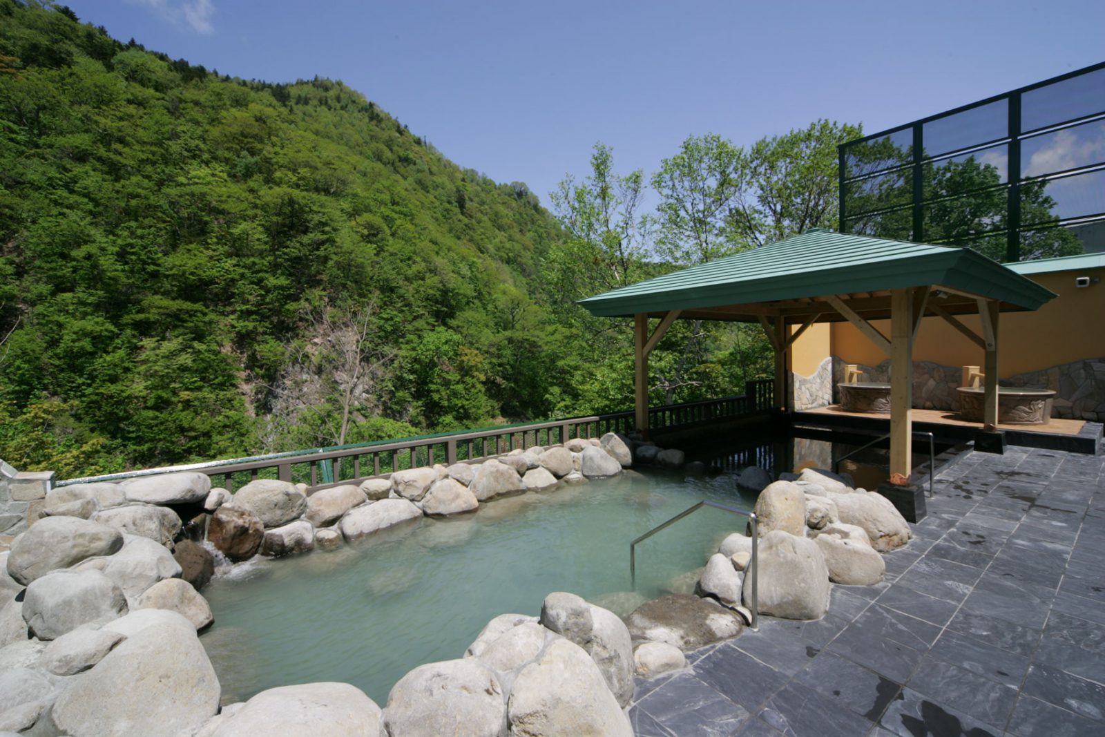 本温泉最大的特色,就是被大自然所环绕,户外感十足的三座大露天浴池,皆为源泉直挂式温泉。有名的北印度料理(特制烤饼、咖喱等)及十割荞麦面都相当有人气。