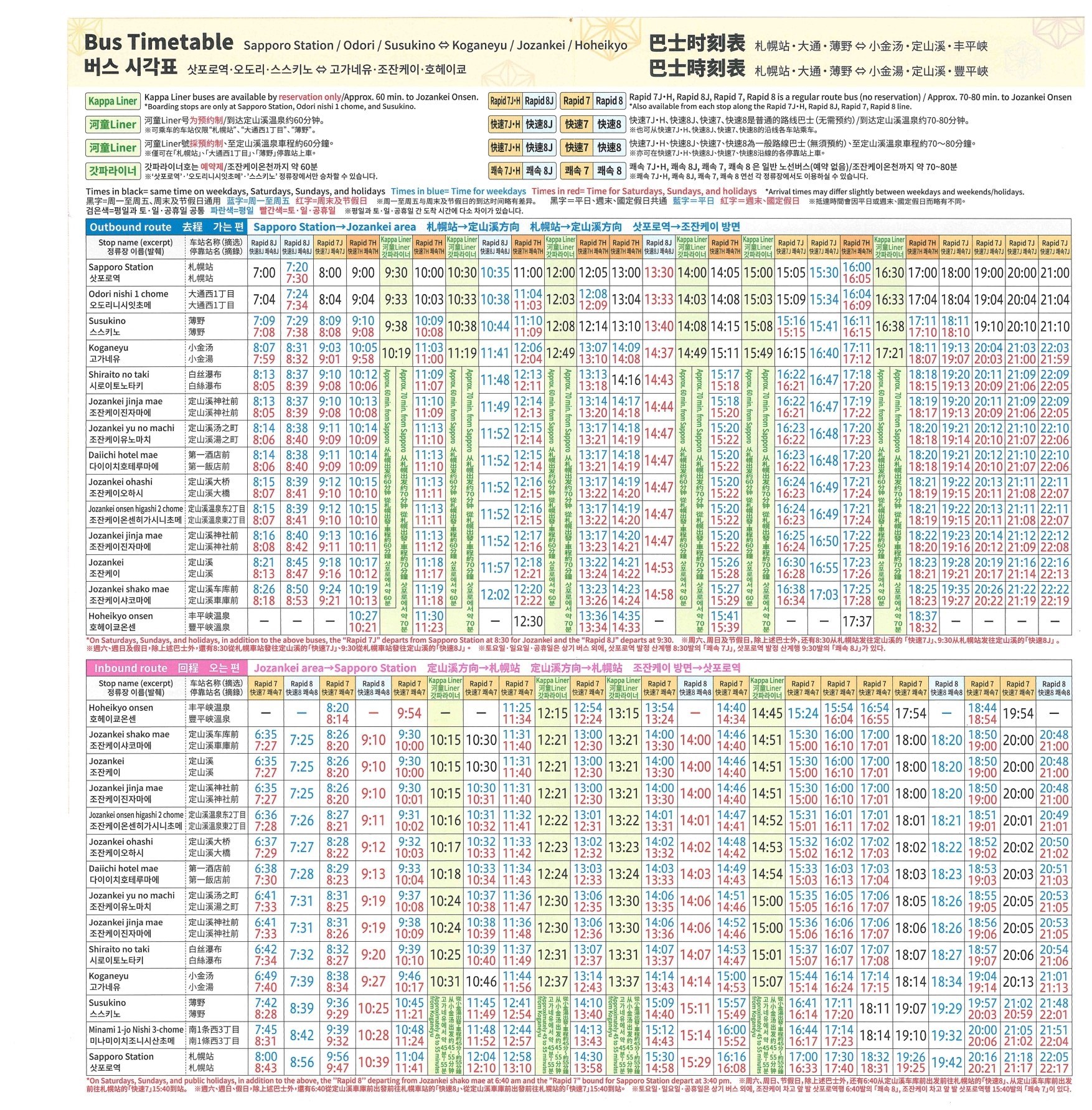 ・快速7等巴士(时刻表白色时刻的巴士)可无限次乘坐,没有座位可以站立乘车。客人取票后需根据巴士时刻表自行选择上下车地点,出游日期及时间。巴士无需预约请合理安排时间游玩。