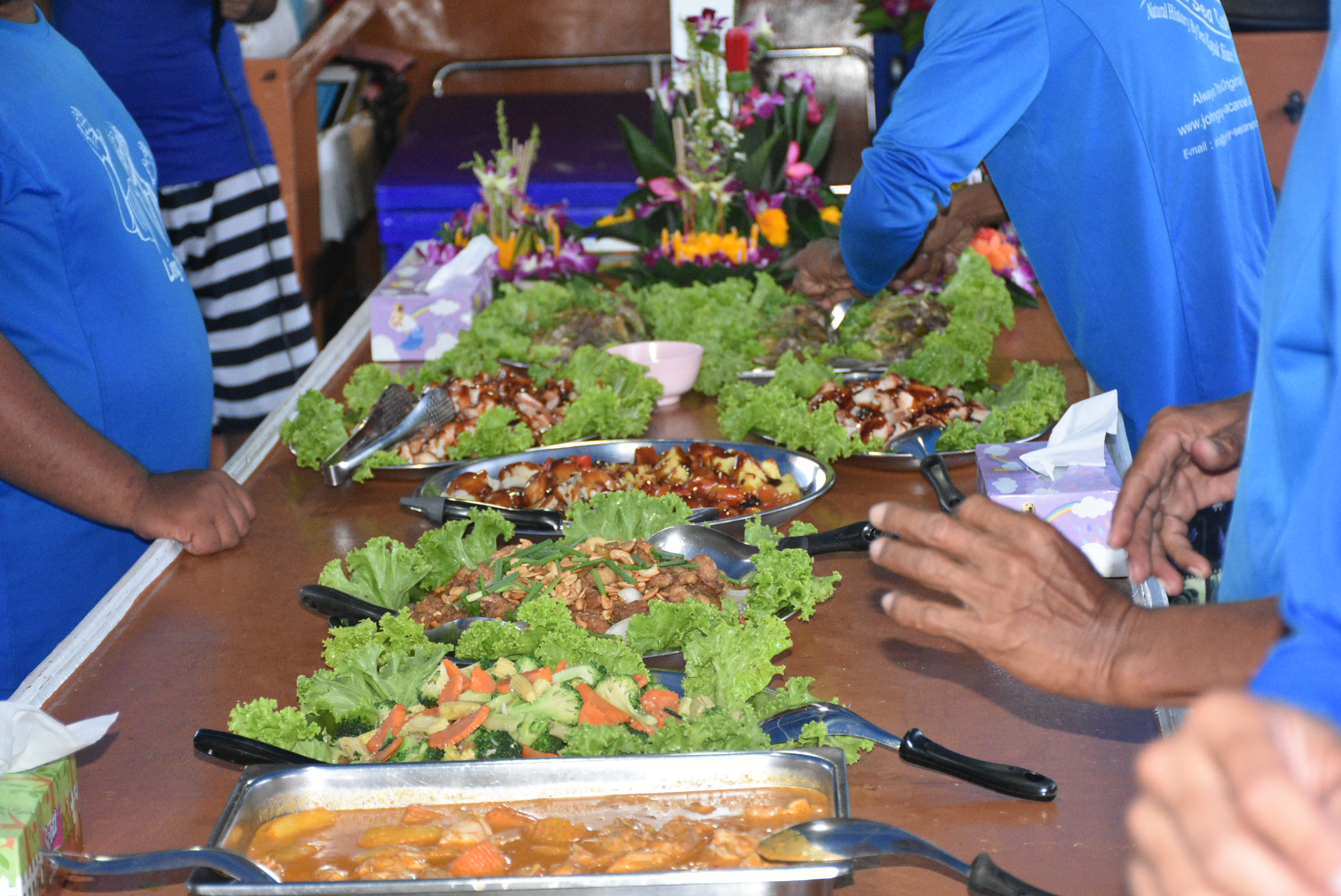 在护送船上享用健康的午餐。
