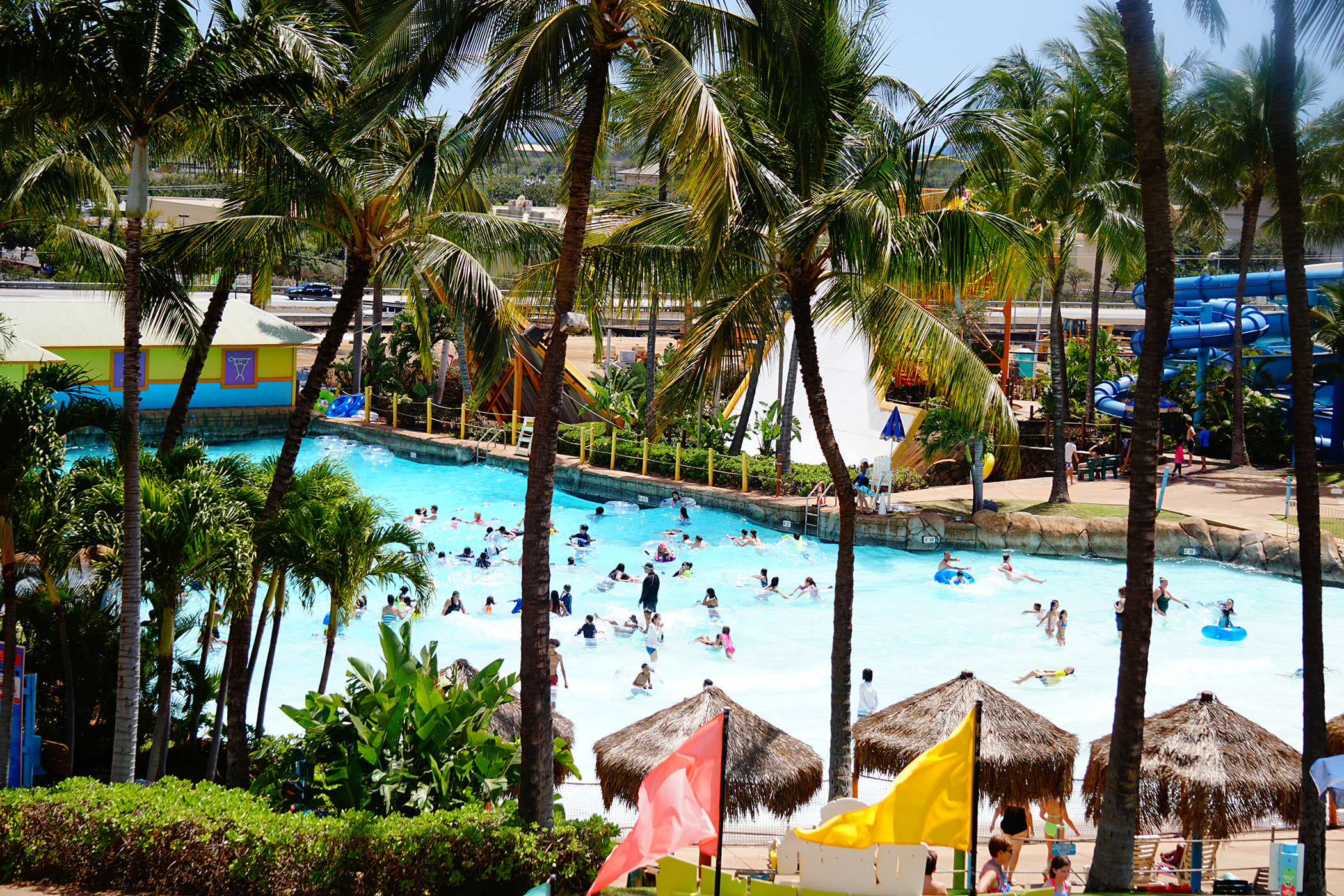 在 Hawaiian Waters Wave Pool 感受海滩氛围