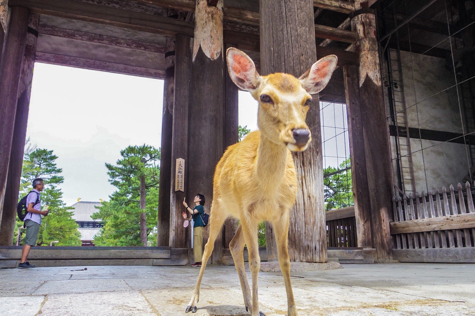 我们在大佛殿前拍一张纪念照吧。这一定会成为您在奈良度过的美好回忆。