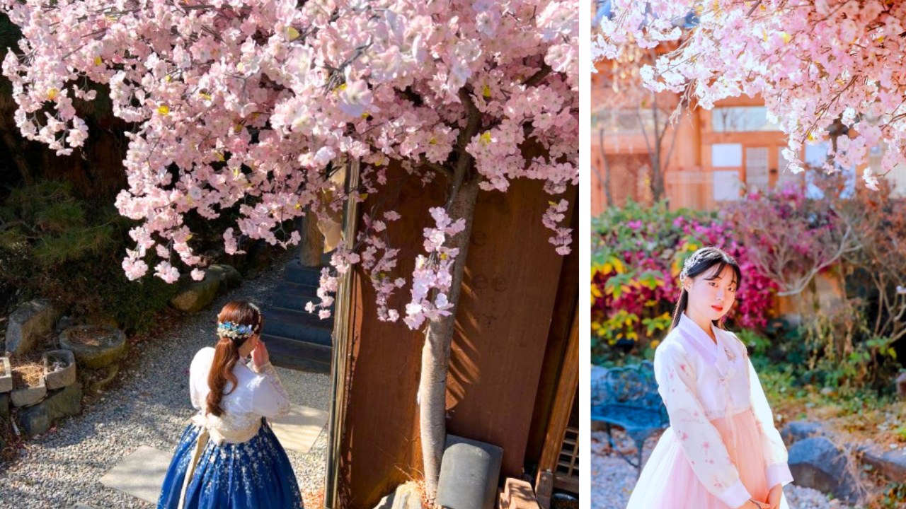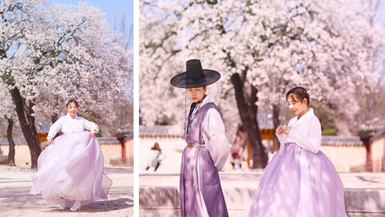 盛放的樱花与穿上韩服的你一起共舞,感受春日浪漫的舞曲。