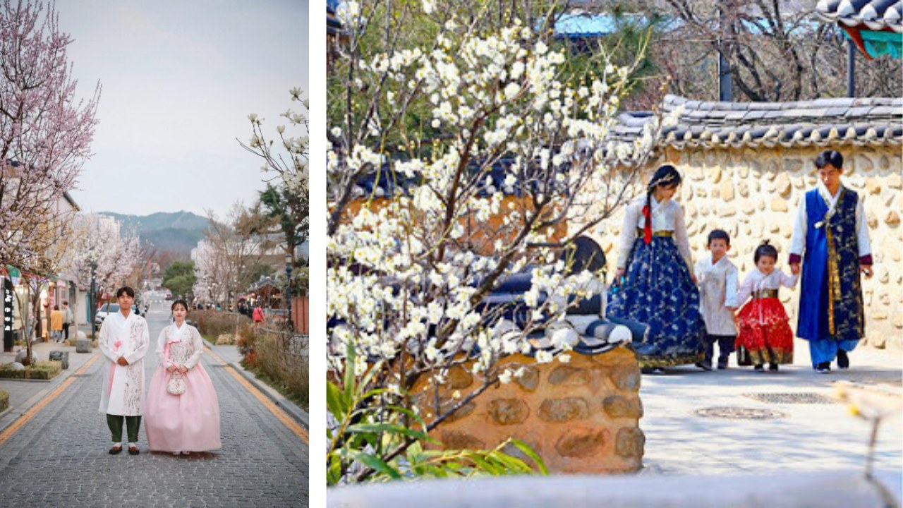 每个角落都有别具特色的景致,无论是韩屋的木门、瓦顶,还是樱花树下的街道,都能成为穿韩服时的完美背景,让每一张照片都充满美感!