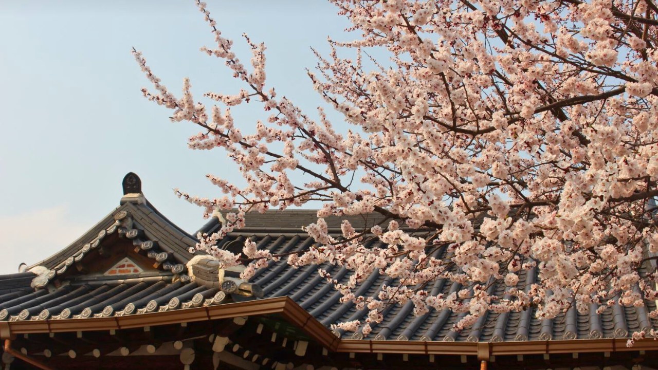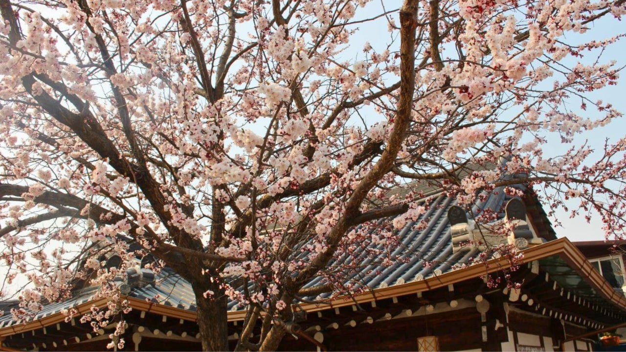 韩屋村独特的瓦顶屋舍与优雅街道,春日里更因樱花点缀,成为拍照与悠闲漫步的完美场所。