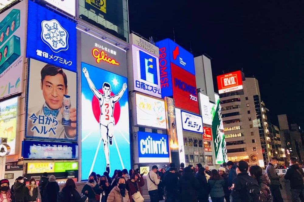 这是道顿堀的主要大阪大庄。大饺子标志是地标