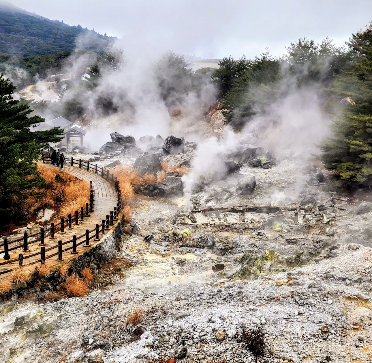 【云仙温泉】日本最初指定的国立公园(云仙天草国立公园)的温泉保养地。温泉街内有称作 “云仙地狱”的喷气带,内有30 处地狱,设有步道、地狱展望台等。