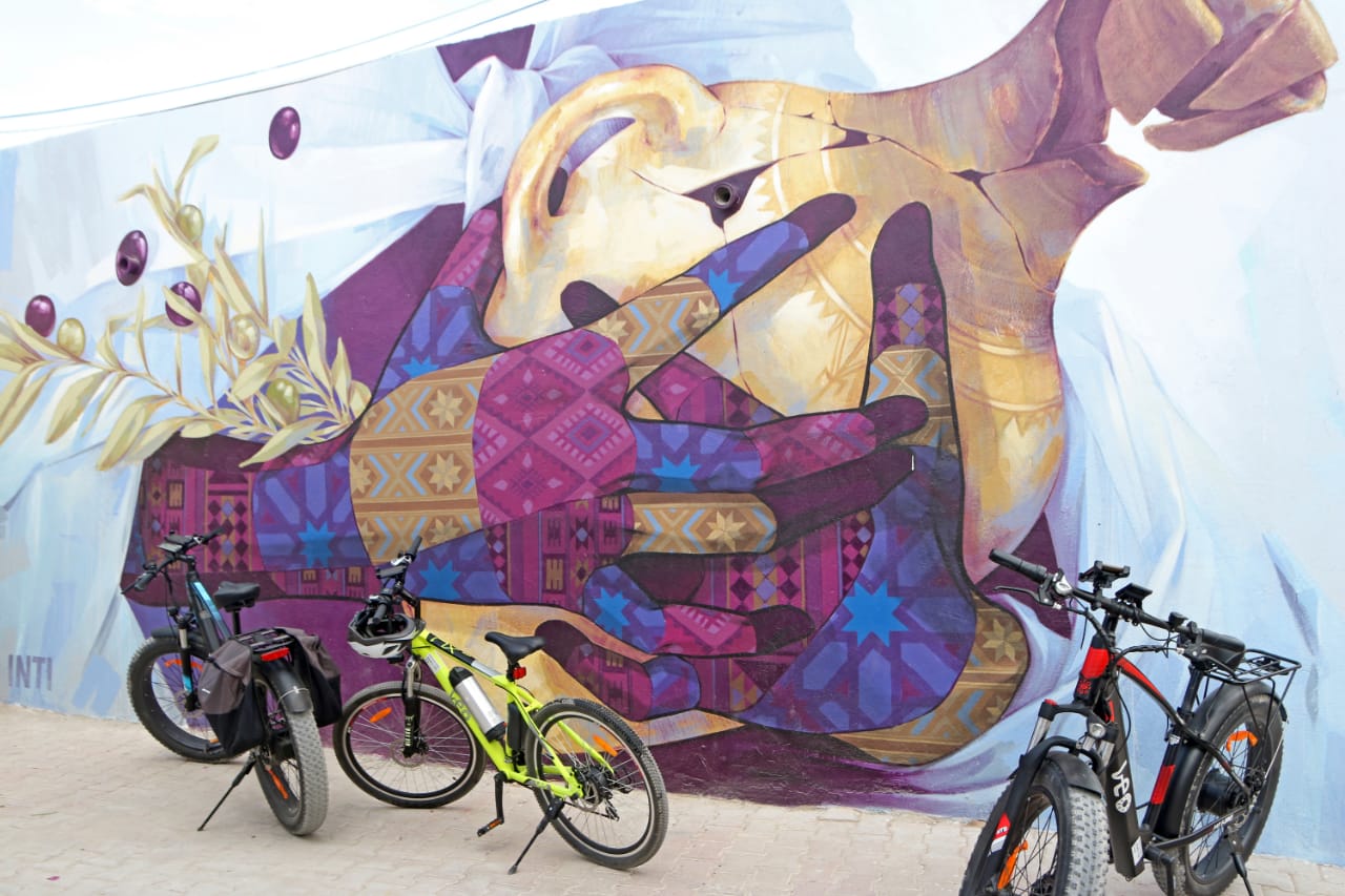 杰尔巴岛 Erriadh 村 Djerbahood 露天博物馆自行车之旅