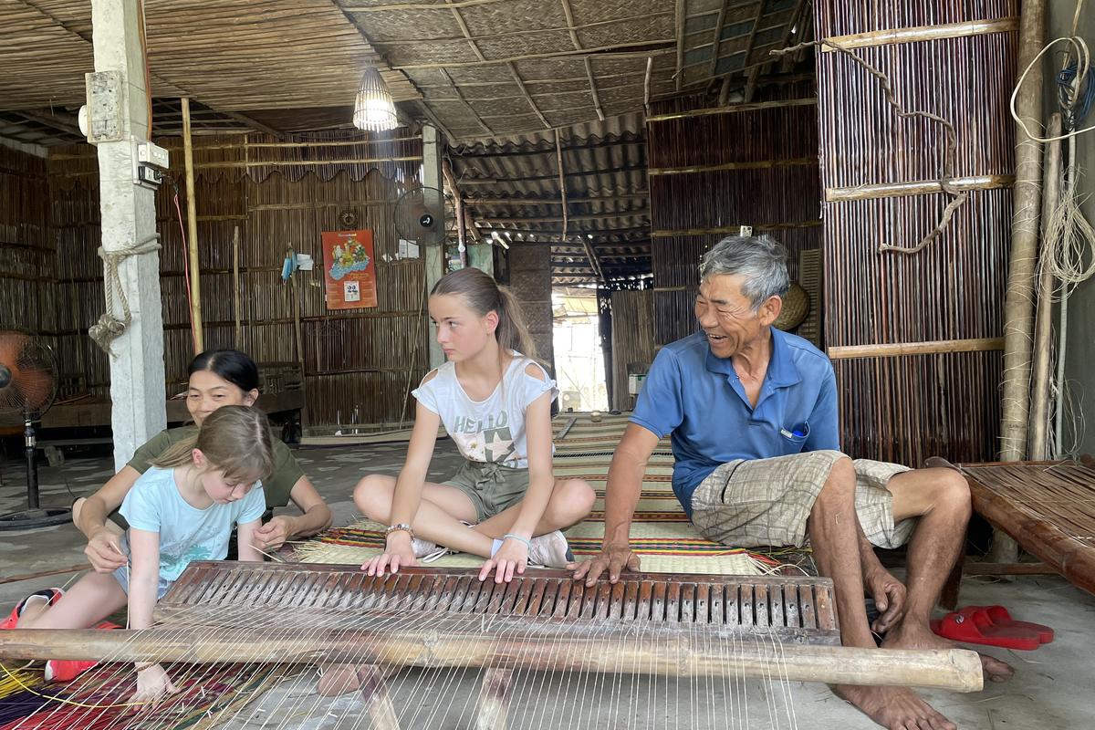 亲身体验当地人编织的草席
