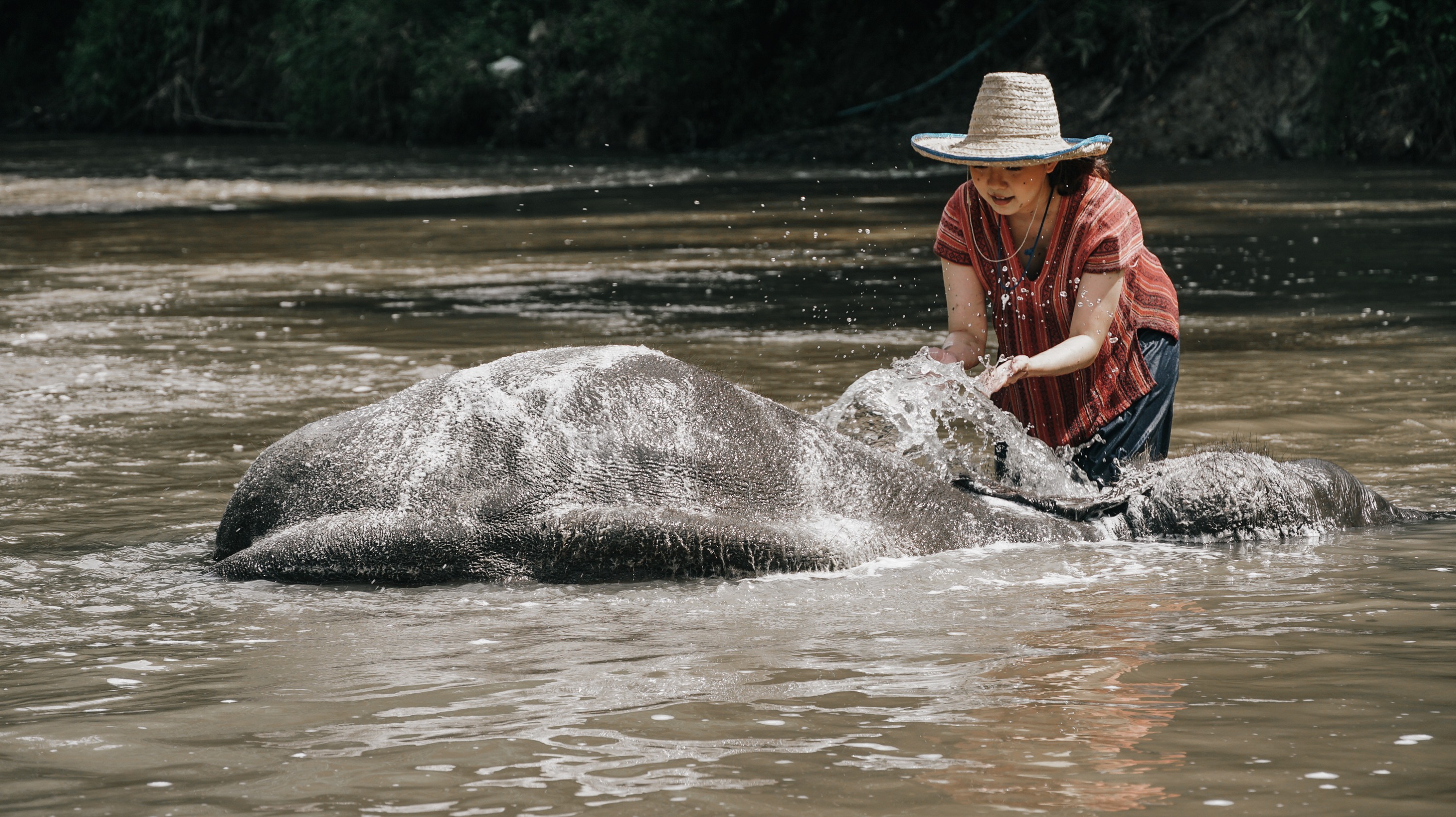 在 Maerim 河享受沐浴和与大象擦肩而过的乐趣